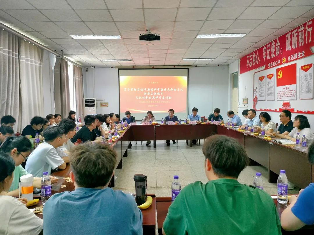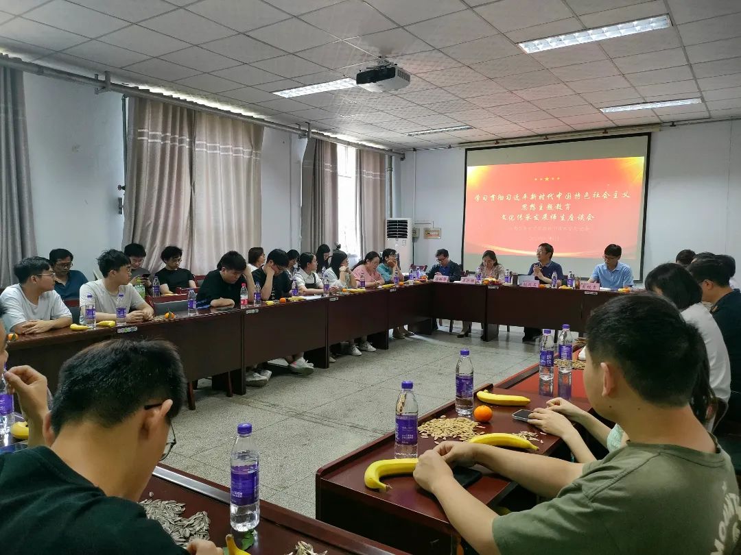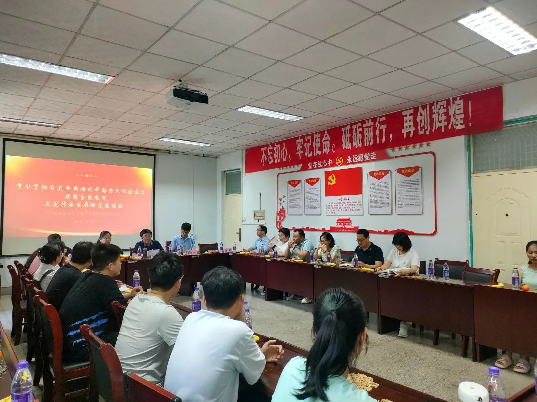 于17号楼405开展学习贯彻习近平新时代中国特色社会主义思想主题教育文化传承发展师生座谈会。院党委书记赵改名、院长黄现青、院党委副书记李蓓蓓、副院长张剑、副院长谢新华、各系(室)负责人出席会议,哔咔漫画