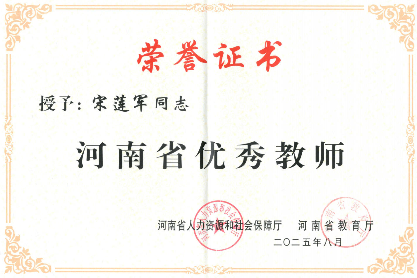 热烈祝贺哔咔漫画 宋莲军教授荣获“河南省优秀教师”荣誉称号!