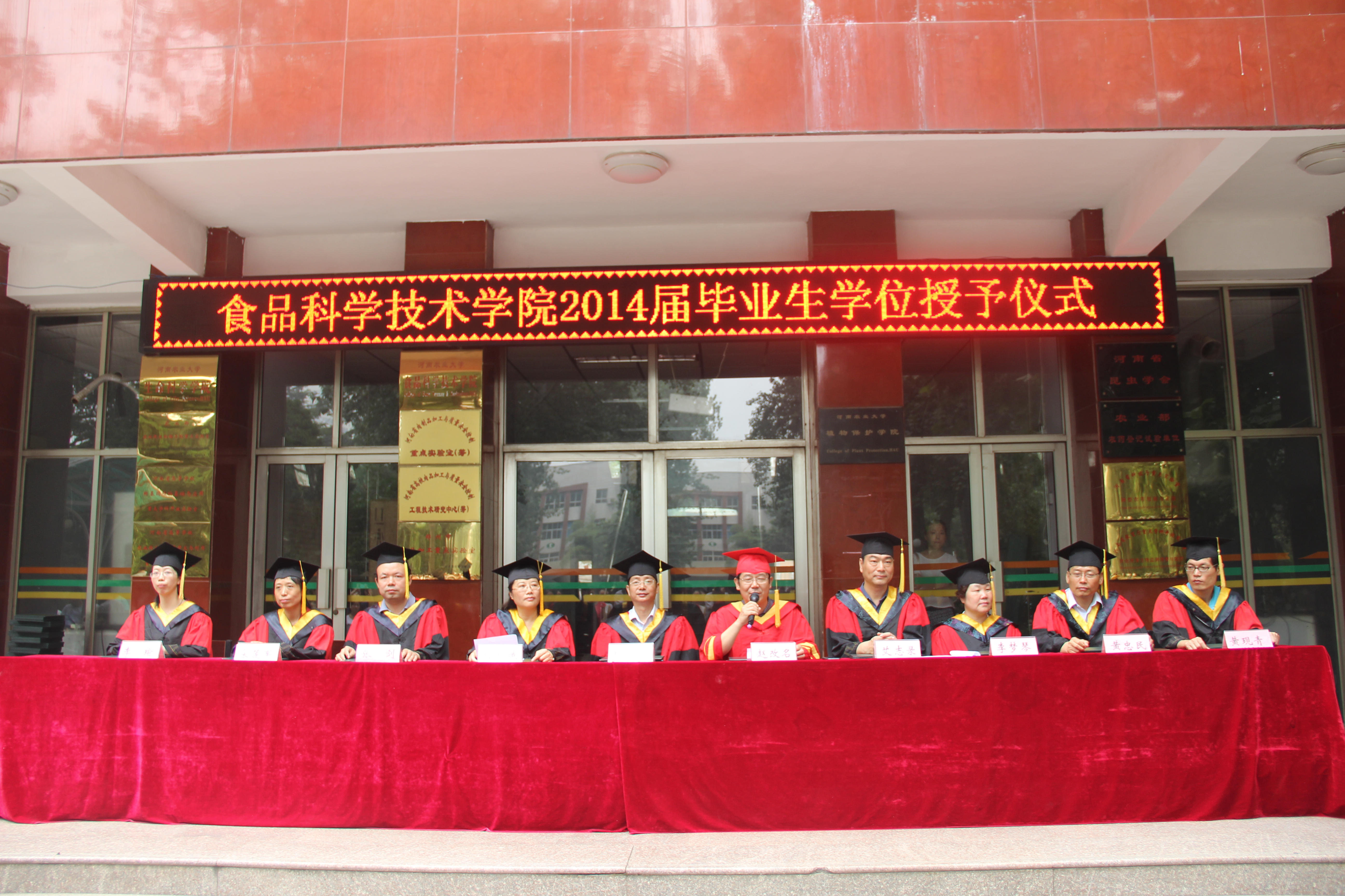 6月16日上午,哔咔漫画 2014届毕业生毕业典礼在校区一号楼前隆重举行,食品学院学位评定委员会全体成员出席仪式,仪式由学院党委副书记孙淑娥主持。339名本、硕毕业生顺利完成学业,从河南农大食品学院扬帆启程,追逐更加美好的明天。