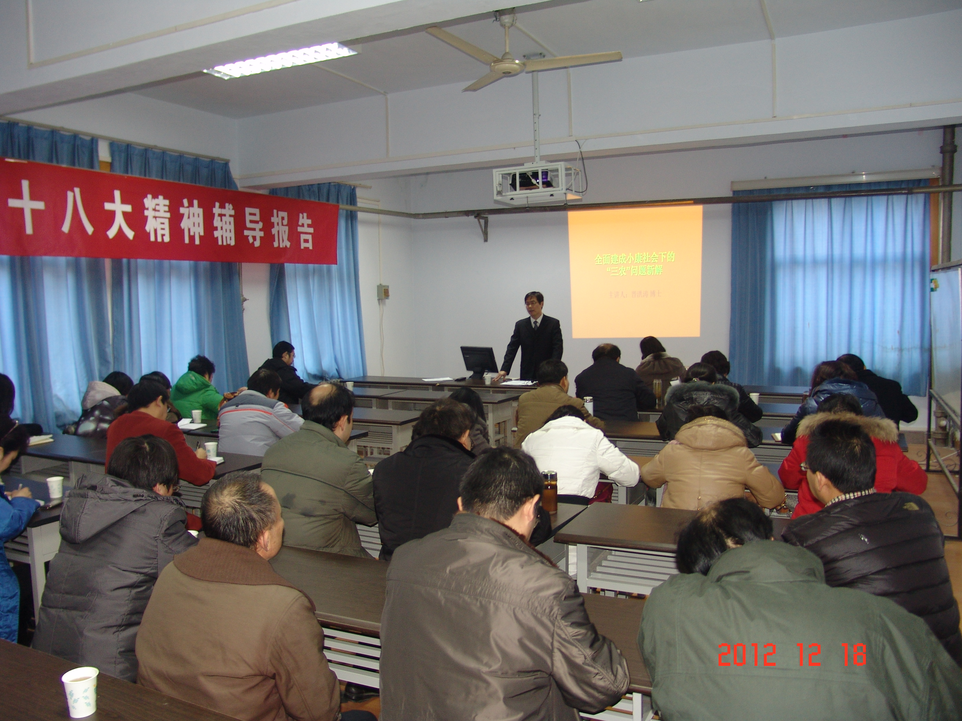 12月18日下午,食品科学技术学院与园艺学院联合举办学习贯彻党的十八大精神专题报告会。校宣讲团晋洪涛博士为两院教职工作了《全面建成小康社会下的“三农”问题新解》的报告。两院领导和教师60余人参加了报告会。
