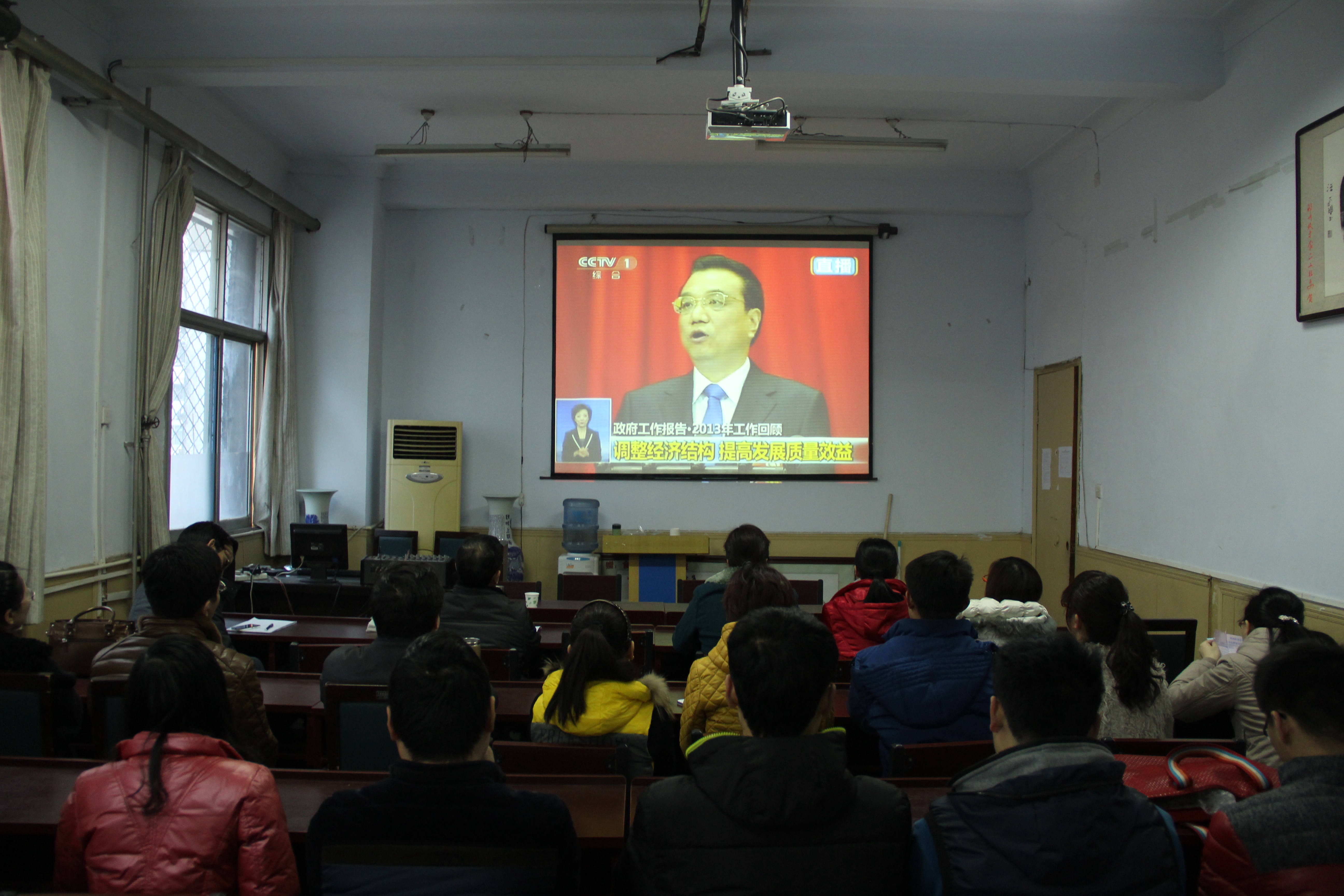 3月5日9时,中华人民共和国第十二届全国人民代表大会第二次会议在人民大会堂隆重举行。哔咔漫画 党委组织全体教工和学生代表在院报告厅观看开幕式盛况,认真收看了李克强总理所作的政府工作报告。