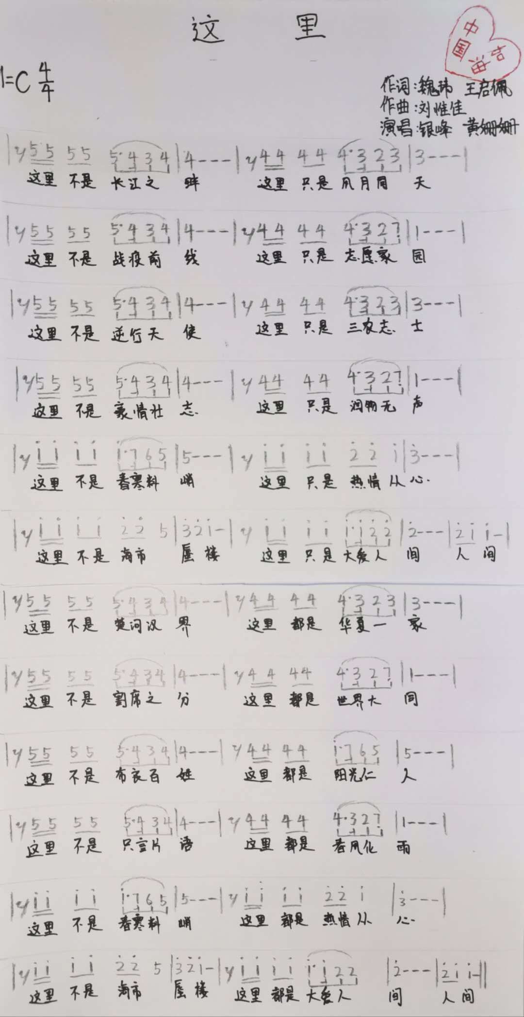 老师魏玮团队以此情此景为点线创作了战“疫”歌曲《这里》(作词魏玮、王启佩,作曲刘惟佳,演唱黄姗姗、银峰)。