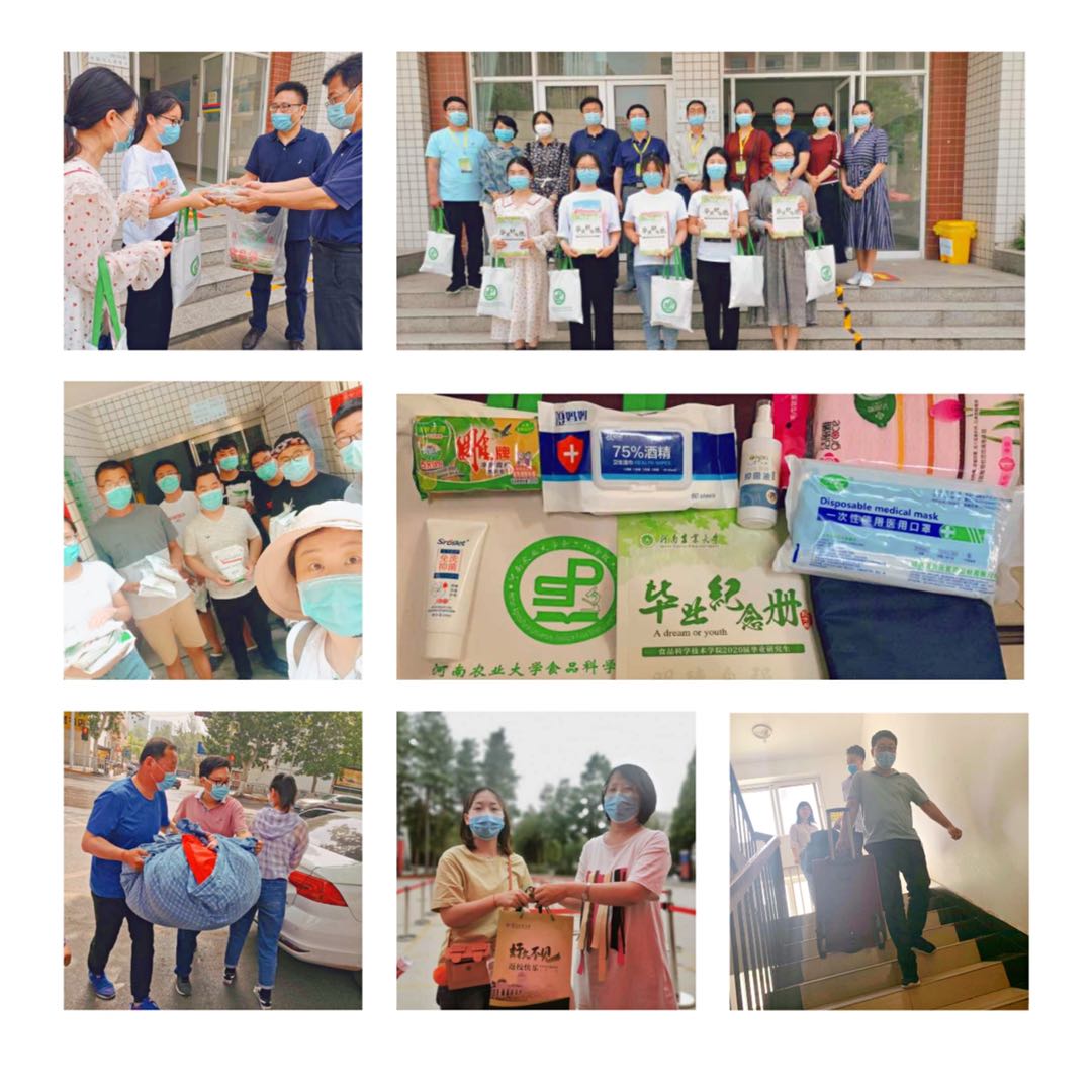“防疫情,送温暖”系列活动包括:一是学院为每一位返校研究生准备了一份爱心防疫大礼包,其中包含口罩、消毒湿巾、帆布袋、毛巾、肥皂、免洗手消毒液等防护用品,同时为毕业研究生准备了超大型编织袋,方便毕业生整理行李。二是落实导师导师包宿舍一对一,导师对学生一对一,宿舍长服务一对一,学院巡班、值班日常化。返校期间,全体研究生导师主动到接待点接学生回家,为他们搬运行李,打扫整理宿舍,时刻叮嘱学生进行晨午检,关注他们的身体健康状况。三是辅导员线上线下送温暖,使广大研究生尽快适应新环境。线上积极开展返校复学防疫工作温馨提醒、带领全体复学研究生聆听开学第一课等;线下学院研究生辅导员变身快递员,积极为全体返校研究生转运各类生活物资、前期实验数据,还特地为全体研究生送去了板蓝根颗粒,希望能提高大家的抵抗力。