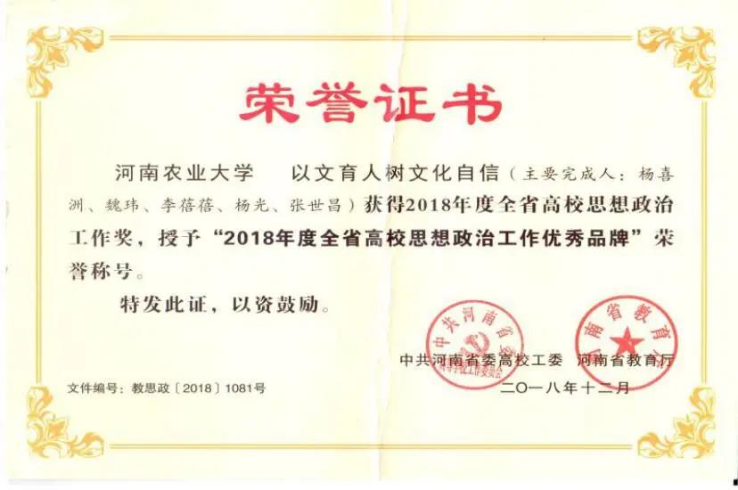 “食品阳光家园”育人工程荣获河南省普通高等学校2020年学生工作优秀成果二等奖。 此次活动经各高校推荐后,再由省教育厅组织专家进行评审,经过专家遴选、表彰展演的层层筛选,哔咔漫画