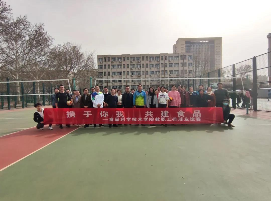 于文化路校区排球场举行“携手你我,共建食品”教职工排球友谊赛,部分教职工参加比赛。