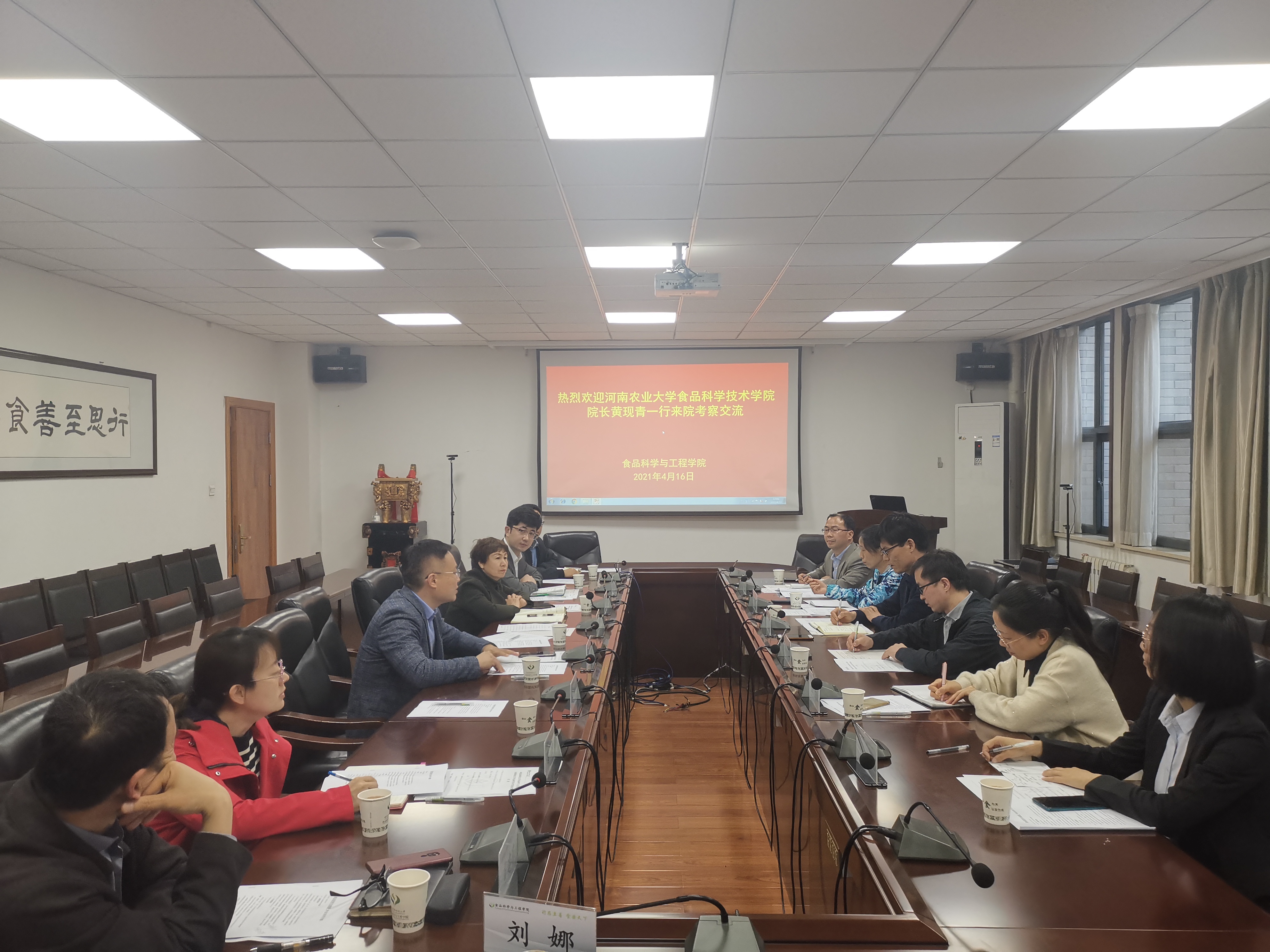 院长黄现青,副院长谢新华带领下,教授委员会宋莲军教授、食品营养与化学系系主任高晓平、副主任李宁、沈玥一行6人赴西北农林科技大学开展新增本科专业食品营养与健康专业建设交流。西北农林科技大学食品科学与工程学院党委书记赵武军、院长吕欣、副院长李菊兰、食品营养与健康系主任王敏、副主任刘志刚、韩林、实验室副主任崔璐、肖建东等参加了交流座谈会,会议由副院长李菊兰主持。