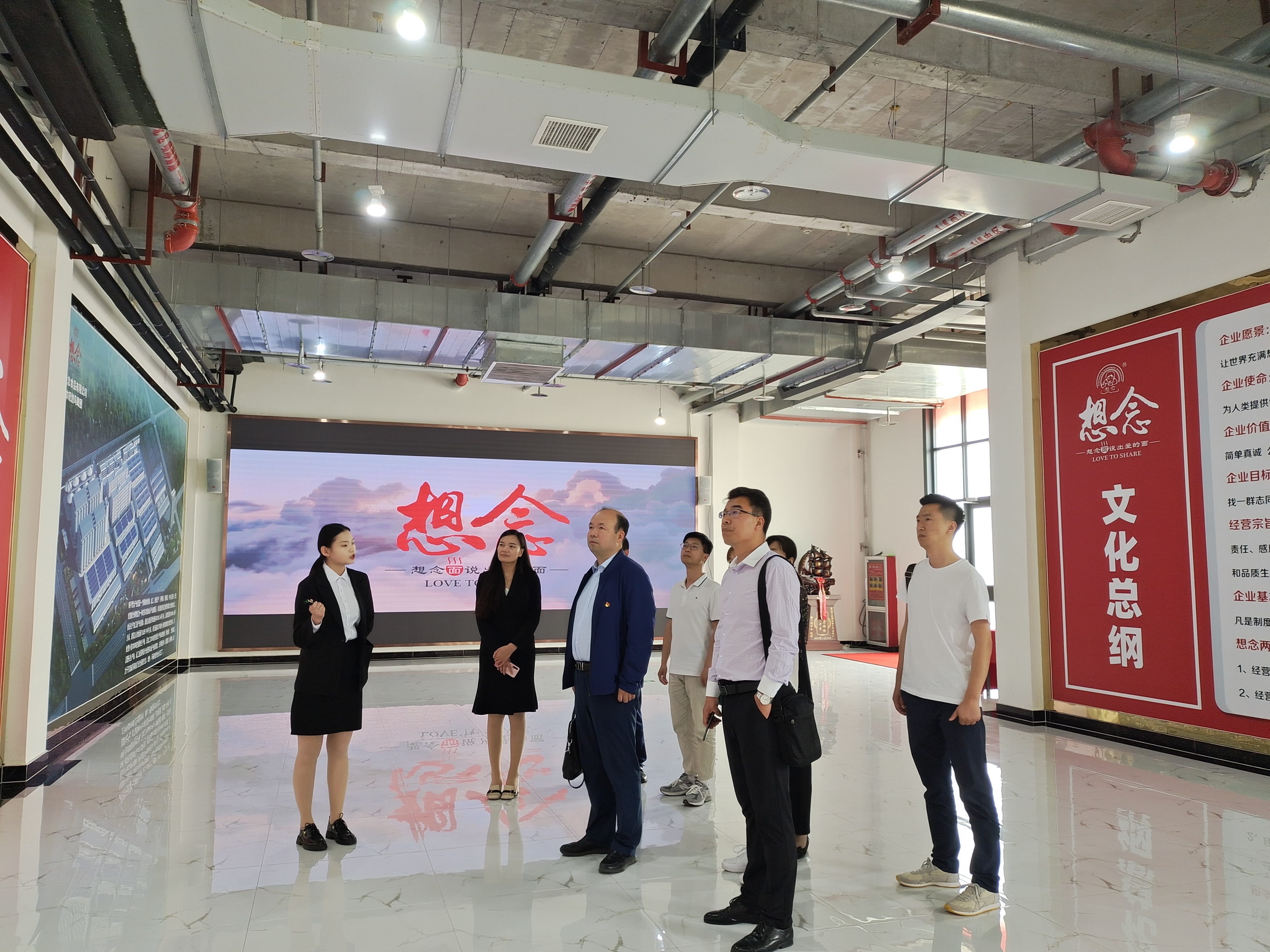 首先,在想念集团人力资源总监谢乐和人力资源部陈佳卉的陪同下参观了想念集团的面粉生产车间和挂面生产车间,对生产车间的工艺流程、设备等进行了介绍。之后,参观了解了想念集团的发展历程、企业理念,镇平想念集团的整体布局、生产建设情况,并介绍了想念集团目前的产品及其特色,对企业有了全方位的认识。