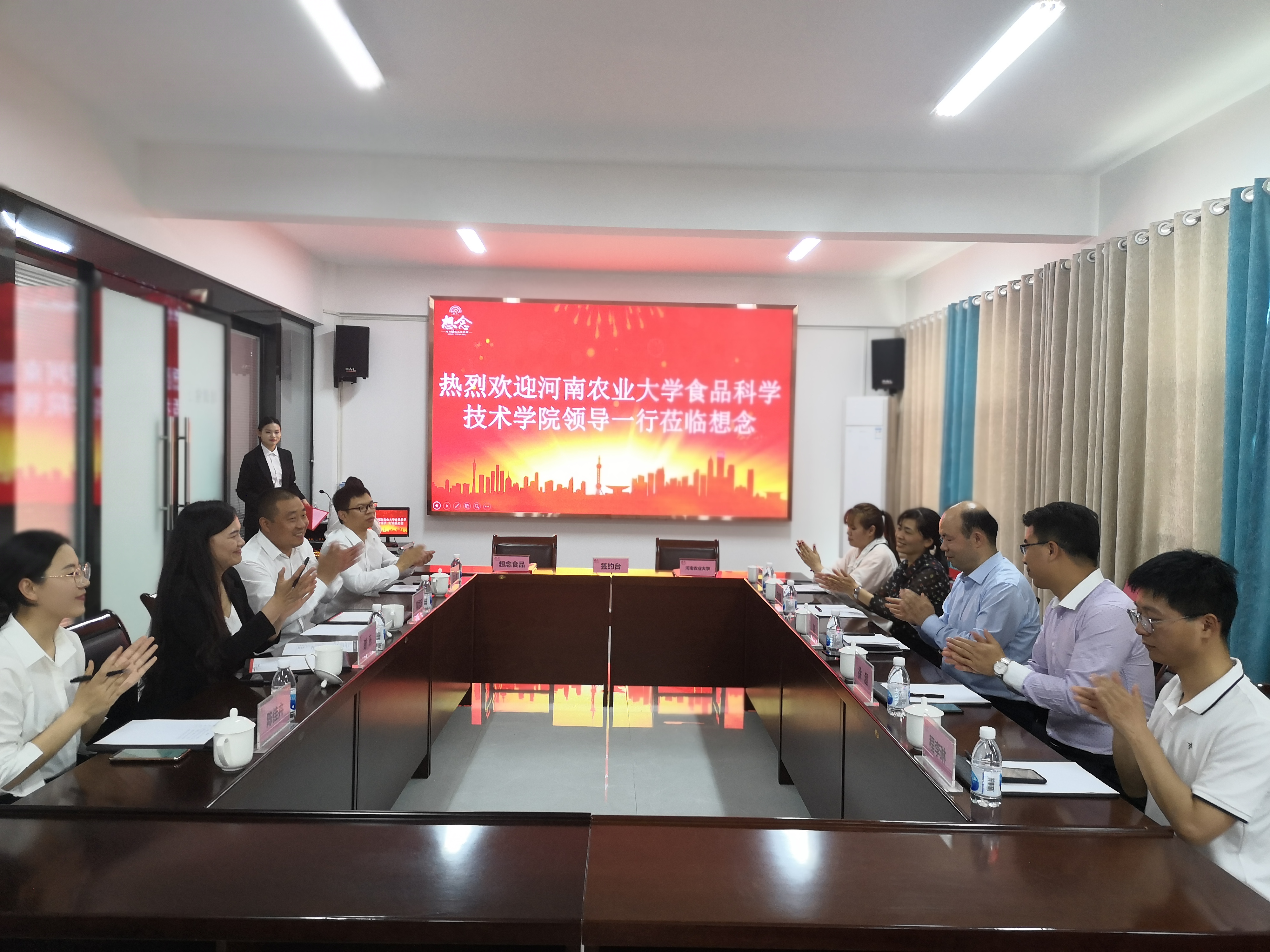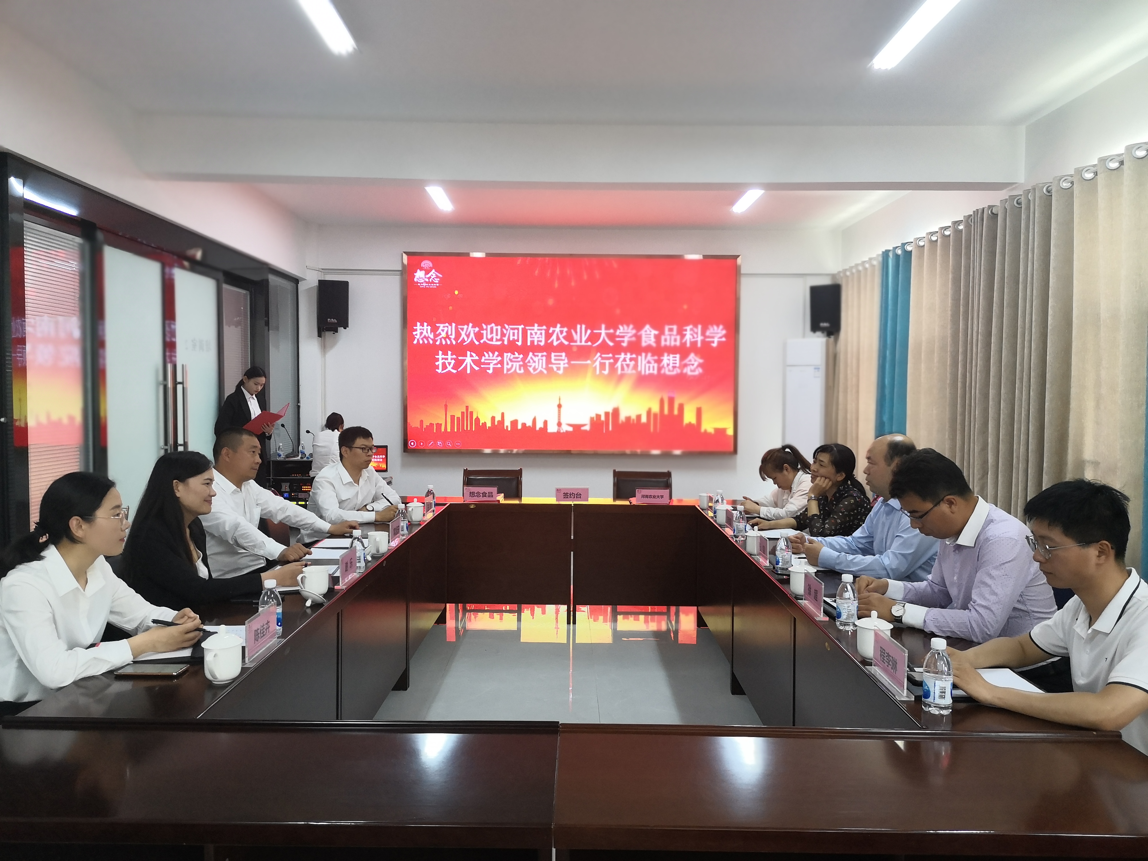 一行表示欢迎,并介绍了镇平想念集团的情况。谢总监和王部长分别介绍了想念集团的招聘、培训及职业发展和研发部目前的人员构成、在研项目及新产品的开发情况。张剑副院长介绍了学院的整体发展、师资、学科建设、教学科研等情况。双方在本科教育教学、学生实习、科研合作等方面达成了诸多共识。