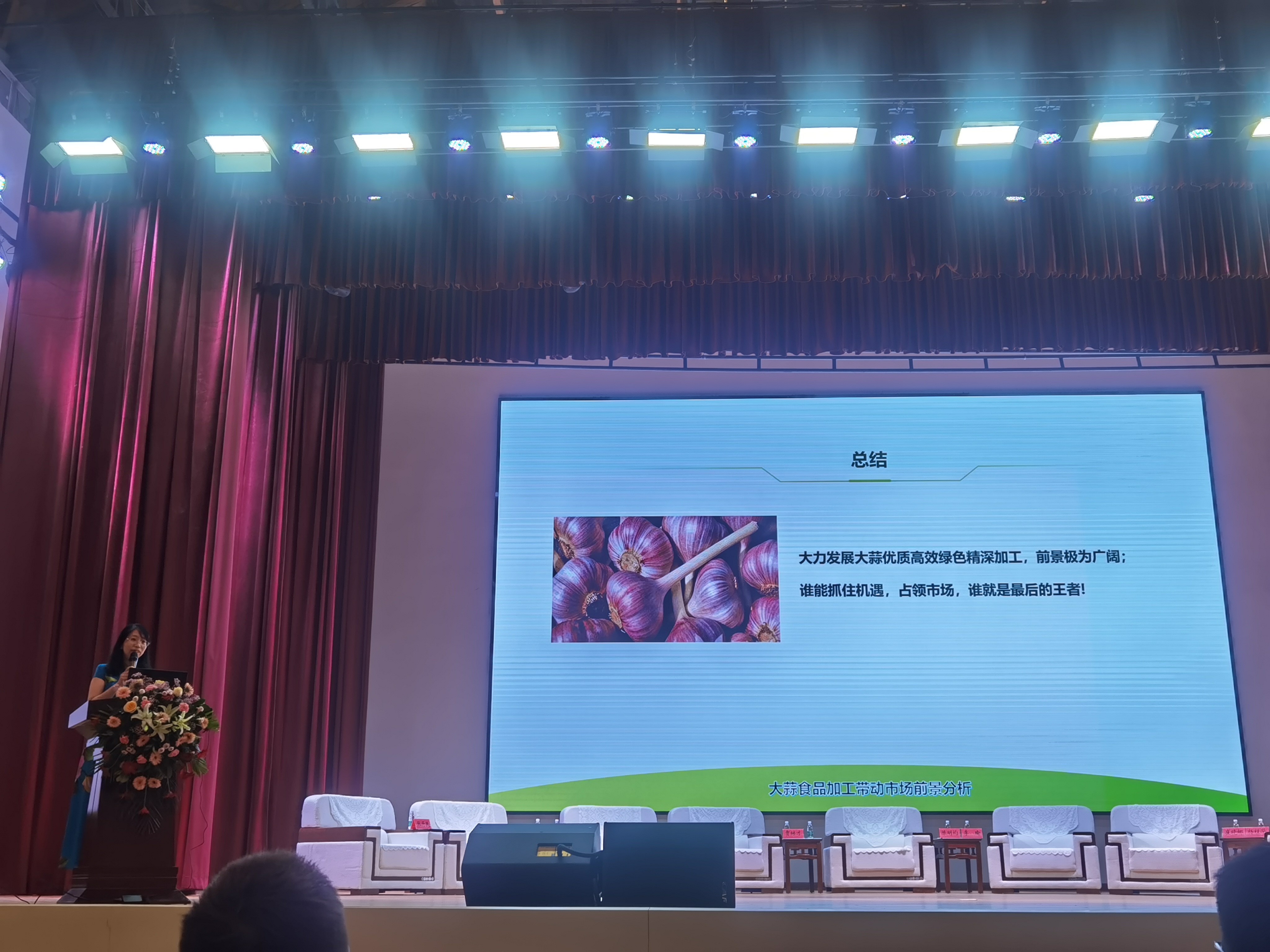 教师李瑜受邀在大会上作“大蒜食品加工带动市场前景分析”的主题报告,并在“产业发展形势研讨会”沙龙互动环节和参会嘉宾热烈讨论大蒜未来的产业化发展方向,指出应进一步推动大蒜产业朝着规模化、标准化、绿色化、国际化的方向发展,进一步延长大蒜精深加工产业化链条,为推动全国大蒜产业的快速健康发展、推动县域经济发展与乡村振兴紧密结合做出贡献。中国蔬菜流通协会会长戴中久、副会长陈明均,开封市政府副市长王玲等领导参加了会议,清华大学中国农业研究院副院长王红宇、国务院发展研究中心市场经济研究所原所长任兴洲和中国农业大学食品科学与营养工程学院教授吴继红等专家学者分别做了主题报告。