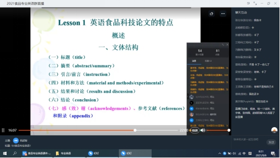 祝超智老师授课《食品专业英语》