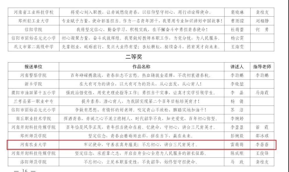 雷萌萌老师《牢记使命,守善求真身蕴美;不忘初心,讲台三尺育英才》在“青春寄语党”活动中荣获二等奖。