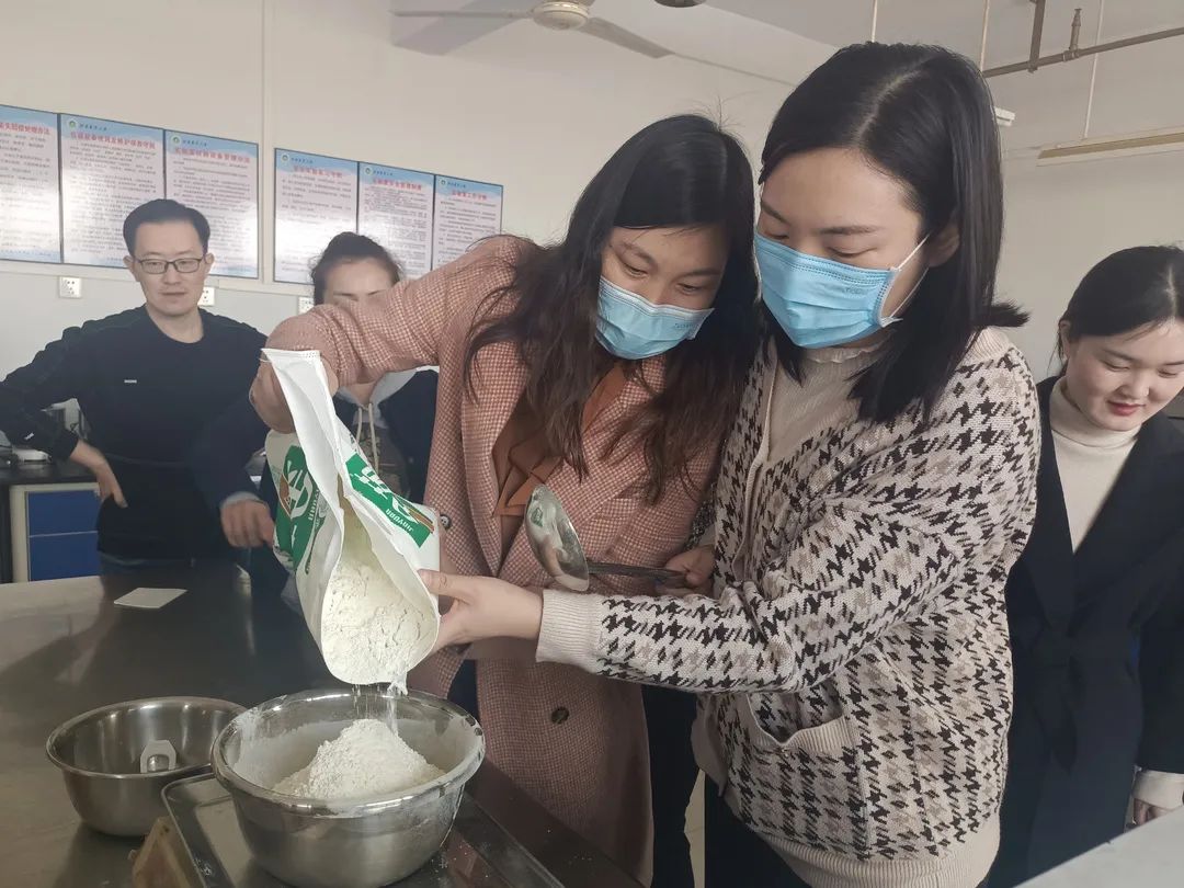 于推广楼七楼食品工艺学实验室开展教职工制作蛋糕活动,全体教职工参加。