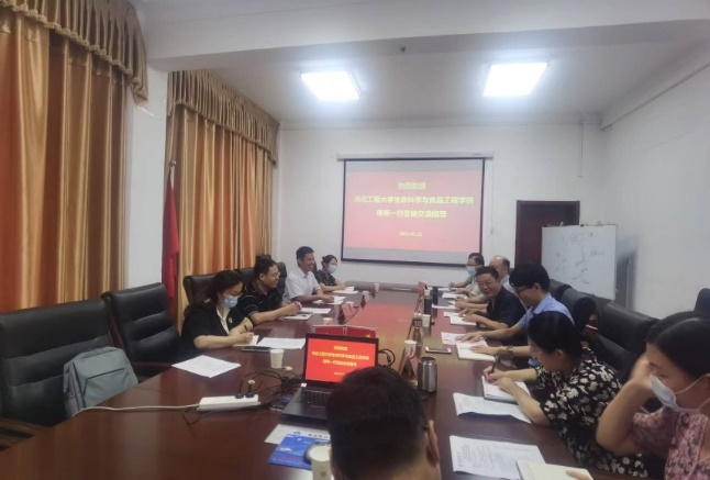 2022年7月25日,河北工程大学生命科学与食品工程学院院长石玉祥、学科办主任苑博华、系主任刘美玉、薛占永等一行来哔咔漫画 进行访问交流。哔咔漫画 党委书记赵改名、院长黄现青、副院长张剑、食工系主任柳艳霞、营养系主任高晓平、中心实验室主任乔明武、办公室副主任徐丽娜、教学秘书李家寅等其他相关老师参加了交流会,交流会由哔咔漫画 院长黄现青主持。