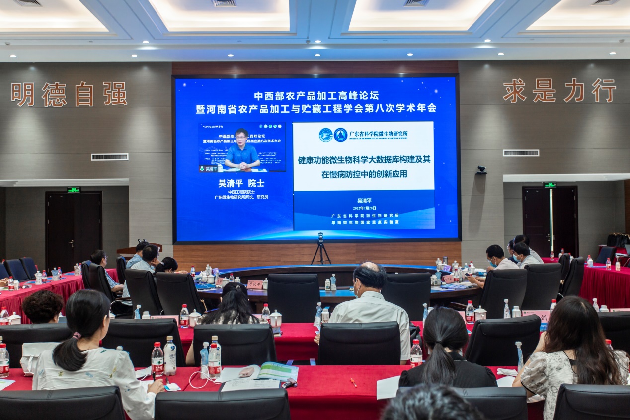 吴清平院士分别从微生物产业发展的需求和机遇、肠道微生物的重要性、微生态制剂与疾病治疗、基于组学技术的新功能安全性评价方法、健康功能微生物科学大数据库构建、高活性健康功能微生物创制六个方面作了《健康功能微生物科学大数据库构建及其在慢病防控中的创新应用》专题报告。
