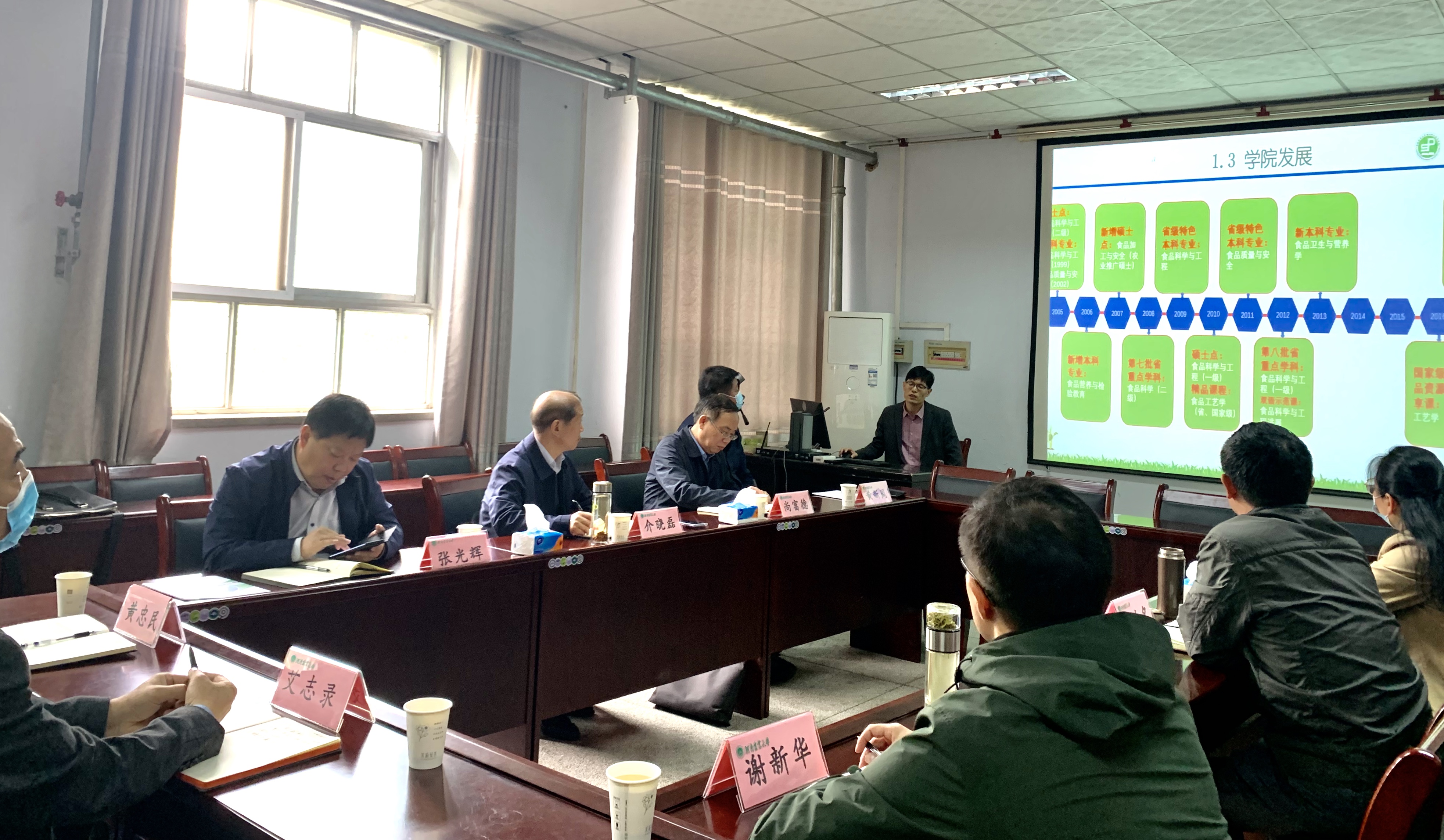 院长黄现青分别从师资队伍、学科与学位点建设、专业与课程建设、科学研究与社会服务、学生工作等方面对学院工作做了全面汇报,同时指出了学院事业发展面临的主要问题及下一步工作方向。党委书记赵改名从食品行业的现状、学生就业、学科建设、基地平台建设和办学条件等方面进行了汇报,并就学院现状提出相关意见和建议。与会人员围绕学科建设、服务食品产业等方面进行了交流。