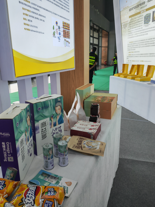 以展板和科技成果汇编等形式将“酱卤肉制品现代化生产关键技术创新与应用”、“全薯粉品高效节能关键技术”、“功能型亚麻乳饮料加工关键技术研究”、“全麦粉品质稳定化与安全控制技术研究”、“功能型花生饮料加工关键技术研究”和“即食型香菇预制菜食品质量安全检测系统研究”等多项农产品加工技术成果展示推介,收到参会人员好评。