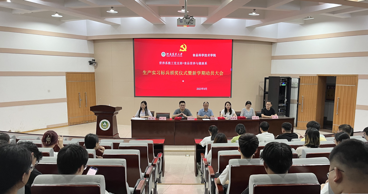 (通讯员 海丹 渠杨柳 徐浩东)2023年9月8日,食品营养与健康系在三百人报告厅举行了食品营养与检验教育专业生产实习标兵颁奖仪式暨新学期学习动员大会。出席会议的主要有20级食检专业全体学生和生产实习带队老师。会议由海丹老师主持。