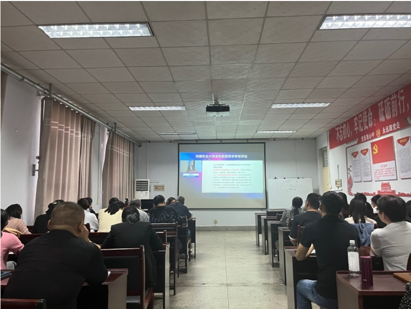 (通讯员 郭琪)10月31日下午,学校召开本科教育教学审核评估迎评工作培训会,学院领导干部在龙子湖校区参加现场会议,其他老师集中观看视频直播参加培训学习,会议由副校长尚富德主持。