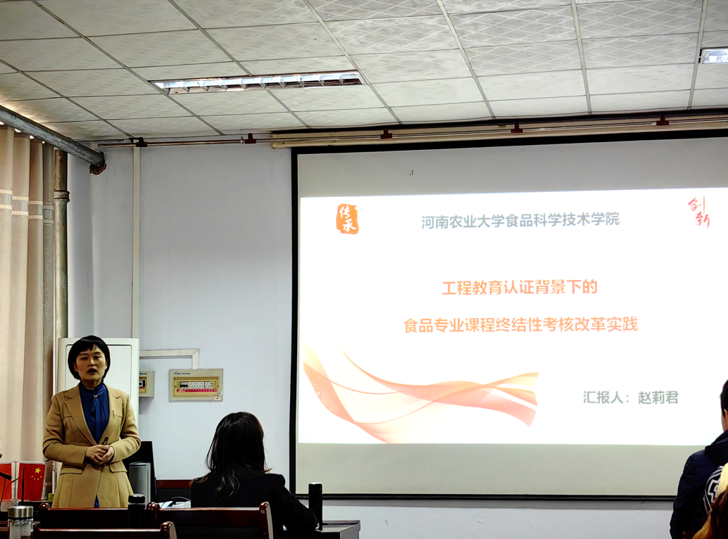 赵莉君老师以“食品物性学课程终结性考核改革实践工作分享”为题,从课程终结性考核改革要点、课程终结性考核实践举例、课程终结性考核反思完善三个方面向大家分享了课程终结性考核改革实践的经验,并鼓励大家在教学过程中结合课程实际情况多反思总结以创新考核方法。