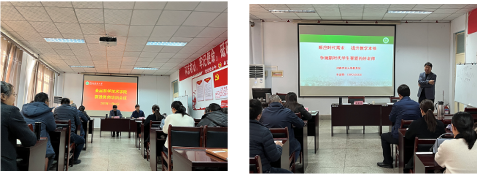 为了提升青年教师对教学设计的认知,强化教学准备的意识,学院邀请教务处副处长王金铎、食品学院雷萌萌和赵秋艳老师作报告。教务处副处长王金铎从新时代对教师的新要求、新时代学生喜爱的好老师标准、新时代好老师的成长路径三个方面深入浅出地讲解了如何成为一名新时代好老师。雷萌萌老师以“教学设计的原则”为题,结合自身教学竞赛经历向大家分享了教学设计的原则和教学方法的选择。赵秋艳老师通过现场示范讲授《食品添加剂》课程,向大家展示了如何将思政教育融入课程教学中,以达到更全面、更深入的教育效果。
