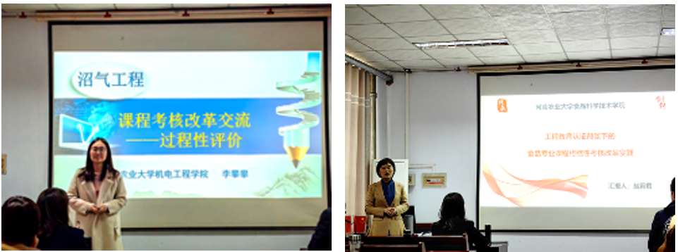 为进一步落实《深化新时代教育评价改革总体方案》,推进课程考核改革,提高人才培养质量,学院邀请机电工程学院李攀攀老师、食品学院赵莉君和李倩老师作报告。李攀攀老师以“以沼气工程为例的课程考核过程性评价改革”为题,从课程考核改革必要性和创新性、过程性评价的实施、课程考核结果分析和改革反思等方面向大家分享了课程考核改革的经验。赵莉君老师以“食品物性学课程终结性考核改革实践工作分享”为题,从课程终结性考核的改革要点、实践举例和反思完善三个方面向大家分享了经验。李倩老师通过现场展示《食品生物化学》课程“三羧酸循环”的模拟授课,从课程概述、学情分析、教学创新、教学目标、教学设计、教学评价等方面向大家示范了说课教学以及课程的讲授。
