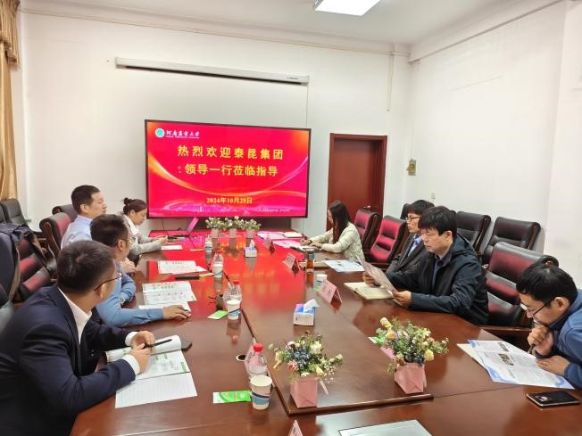 会上,与会人员共同观看了泰昆集团宣传片。贺建生详细介绍了泰昆集团的主要产业情况、养殖规模、加工规模、饲料研发进展等,希望加强校企合作,招聘食品专业相关人才。