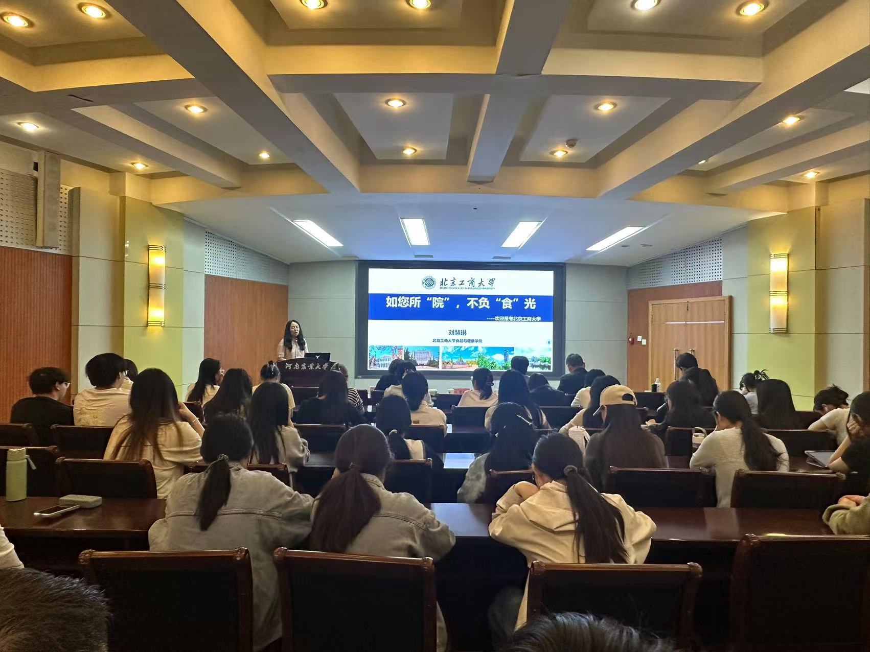 师生举办专题宣讲会,重点介绍了北京工商大学食品与健康学院的发展历程,学科分类,人才储备,科研水平等。宣讲会现场气氛热烈,两校师生就交叉学科研究、创新创业实践等话题展开互动,为后续合作奠定基础。