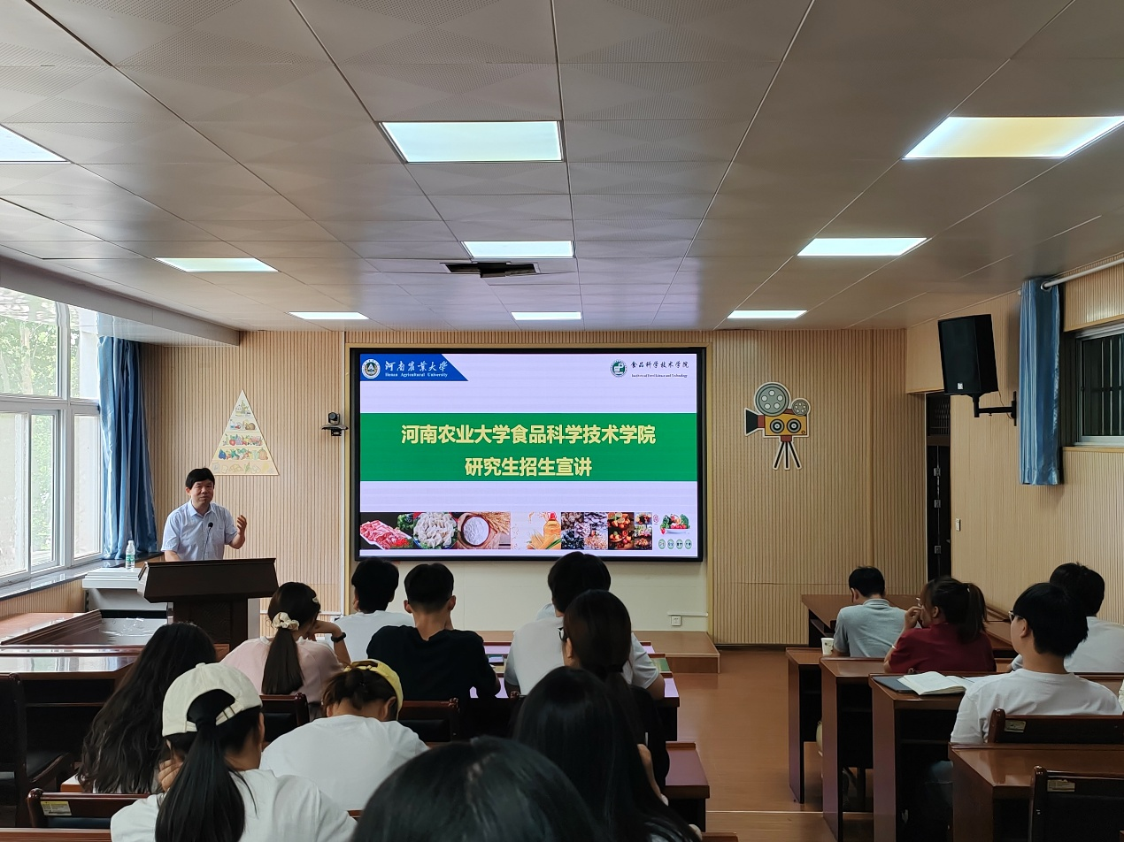 的办学实力,并重点介绍了畜产品加工、主食及速冻食品、食品营养与安全、粮油精深加工、果蔬加工与品质调控、功能与健康食品六大特色科研团队,使同学们对学院的研究生培养特色有了更深入的了解。最后,在互动交流环节,张剑教授、安艳霞和李家寅老师耐心细致地解答了学生们提出的各种问题,现场气氛热烈,与会学生纷纷表示,通过此次宣讲会,不仅对考研政策有了更清晰的认识,也对未来的研究方向有了更明确的规划。