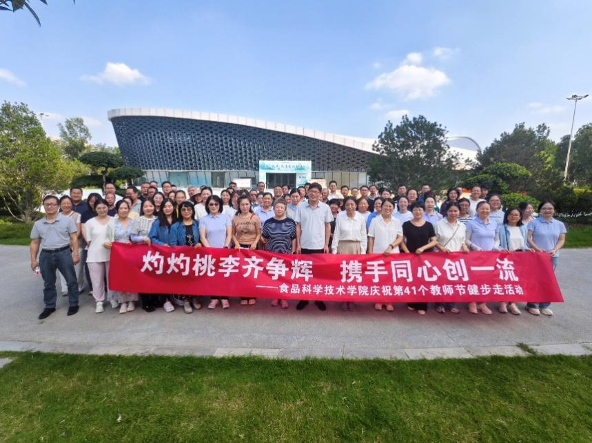 于9月9日下午在郑州市青少年公园组织开展了以“灼灼桃李齐争辉,携手同心创一流”为主题的健步走活动,学院全体教职工踊跃参与此次活动。