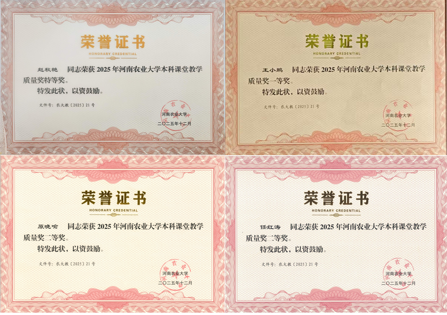 原晓喻副教授长期深耕《食品分析与检验》《仪器分析》等专业课程教学一线,其教学成果丰硕,主持及参与了校级本科课程考核改革项目、线上一流课程建设及知识图谱课程开发;并在河南省教育数字化创新应用大赛、河南省教学技能竞赛等活动中屡获佳绩。她积极推动教学改革与课程思政融合,探索形成的“线上+线下”混合教学模式效果显著。