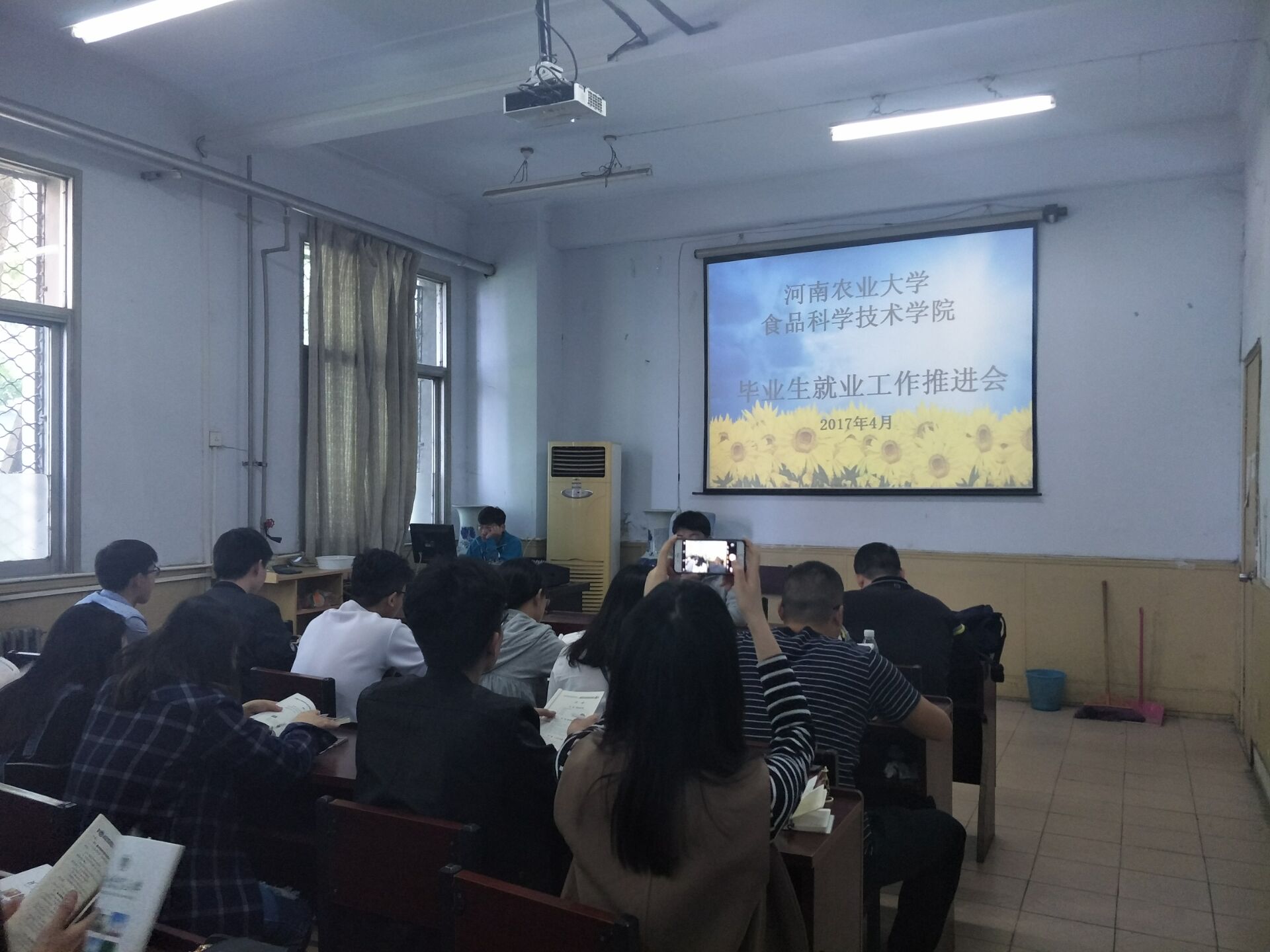 在文化路校区一号楼报告厅召开毕业生就业工作推进会。院团委书记李蓓蓓、院团委副书记杨光、院党委组织员张世昌、院辅导员孟子晴出席会议。学院毕业生代表参加此次会议。