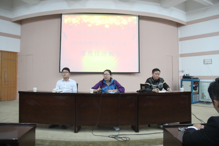 2016级新生入学教育之理想信念教育在文化路校区三百人报告厅举行。院团委书记李蓓蓓、团委副书记杨光、院党委组织员张世昌出席讲座,全体2016级新生参加讲座。