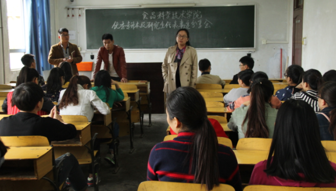 在文化路校区三号楼408教室召开了优秀专升本及研究生代表事迹分享会。院团委书记李蓓蓓,院团委副书记杨光,院党委组织员张世昌出席会议,14级食品营养与检测学生代表参加。院优秀专升本代表梁冬、何悦姗及研究生代表毋修远担任本次分享会主讲。