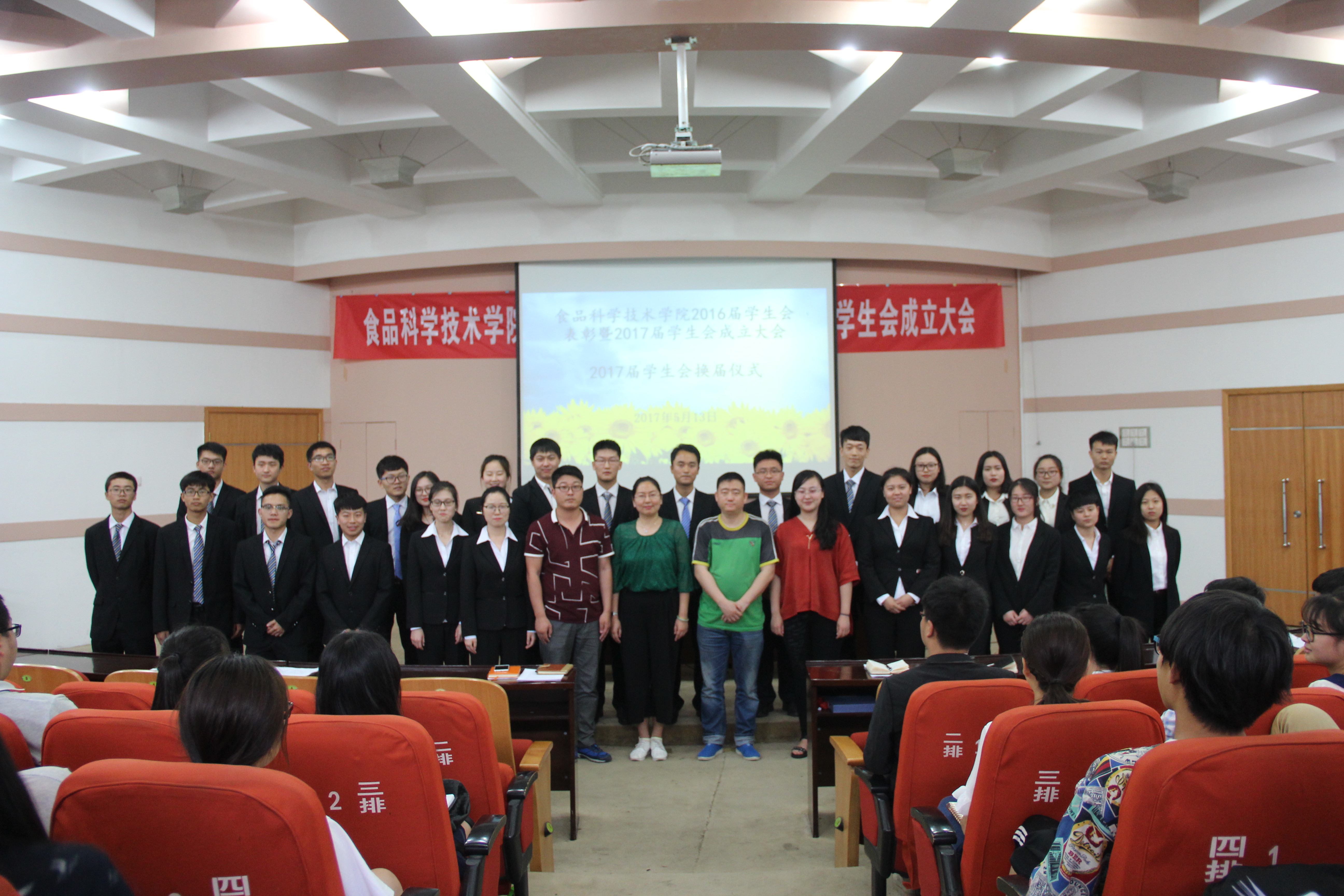 在文化路校区三百人报告厅隆重举行2017届学生会换届仪式。院团委书记李蓓蓓、院团委副书记杨光、院党委组织员张世昌、院辅导员孟子晴出席大会,学院主要学生干部参加大会。