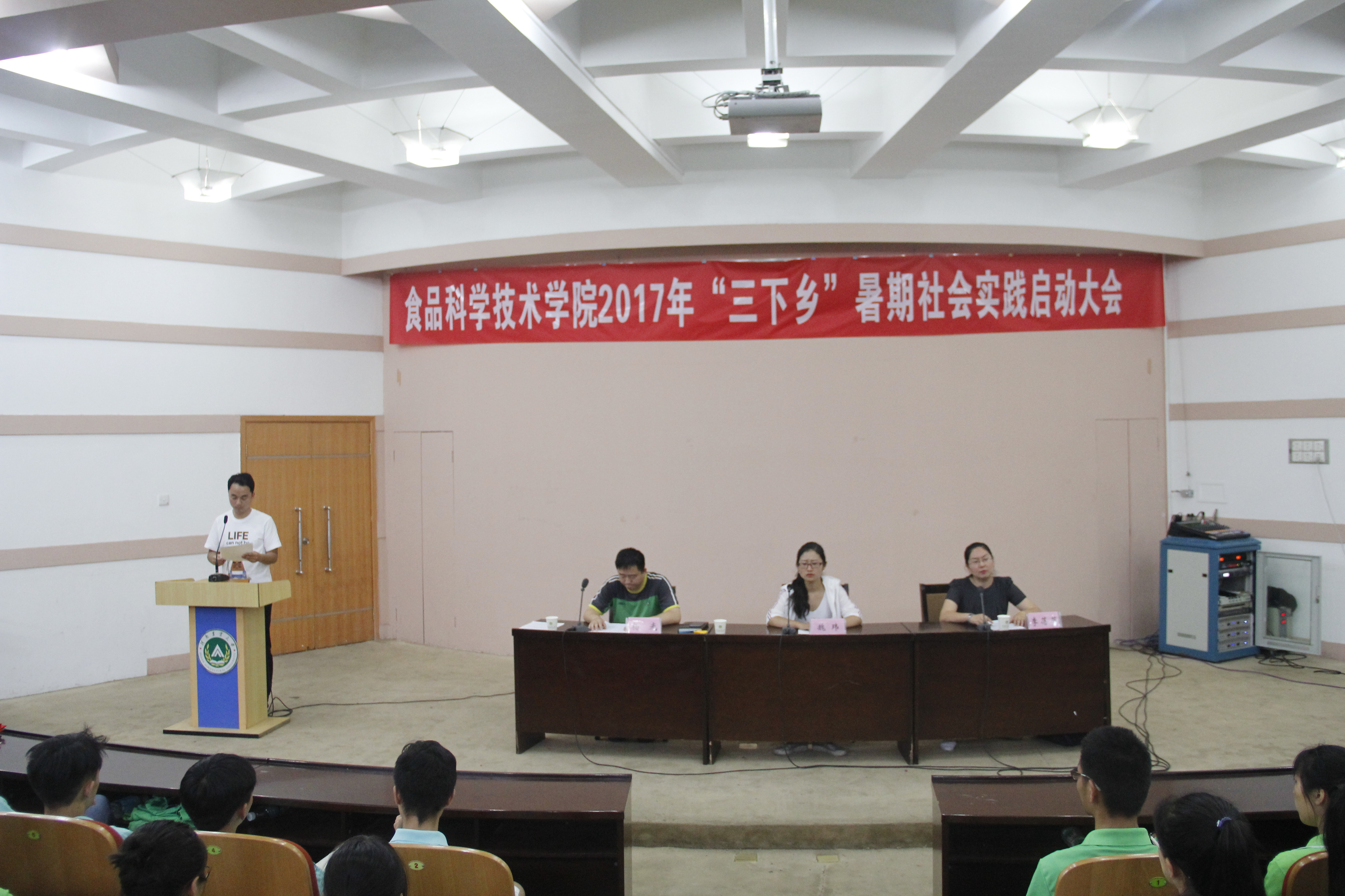 在文化路校区三百人报告厅隆重举行2017年“三下乡”暑期社会实践启动大会,院党委副书记魏玮,院团委书记李蓓蓓,院团委副书记杨光出席大会,学院全体社会实践成员参加会议。