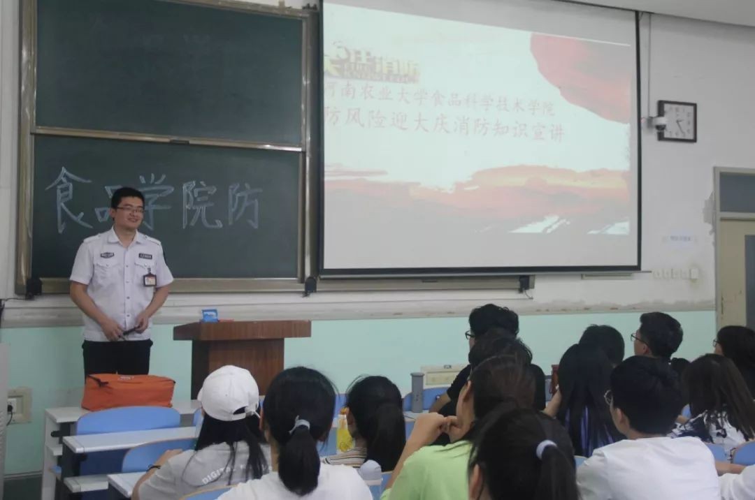 会议伊始,解文宇通过各类火灾案例, 并配合一幅幅触目惊心的图片、一段段发人深省的视频,生动地讲解了消防安全知识的必要性。接着,解文宇用深刻的语言详细讲述了如何树立公共消防意识,预防、杜绝可能引起消防事故的内外隐患。随后,解文宇从“防火”“灭火”“逃生”“自救”四个方面以幽默风趣,平和的语句介绍了火灾的形成过程、自救逃生的方法及灭火器的种类和操作方法等一系列消防安全知识。最后解文宇告诫同学们财产可以再造,生命只有一次,呼吁同学们关注消防,珍爱生命。