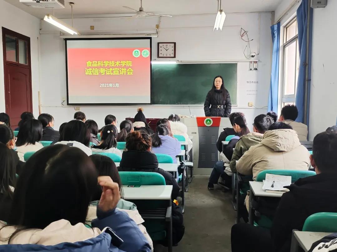 于文化路校区三号楼302、303、304教室召开诚信考试专题会,院团委书记路平讲话,院团委副书记陈翔主持会议,2020级全体学生参加会议。