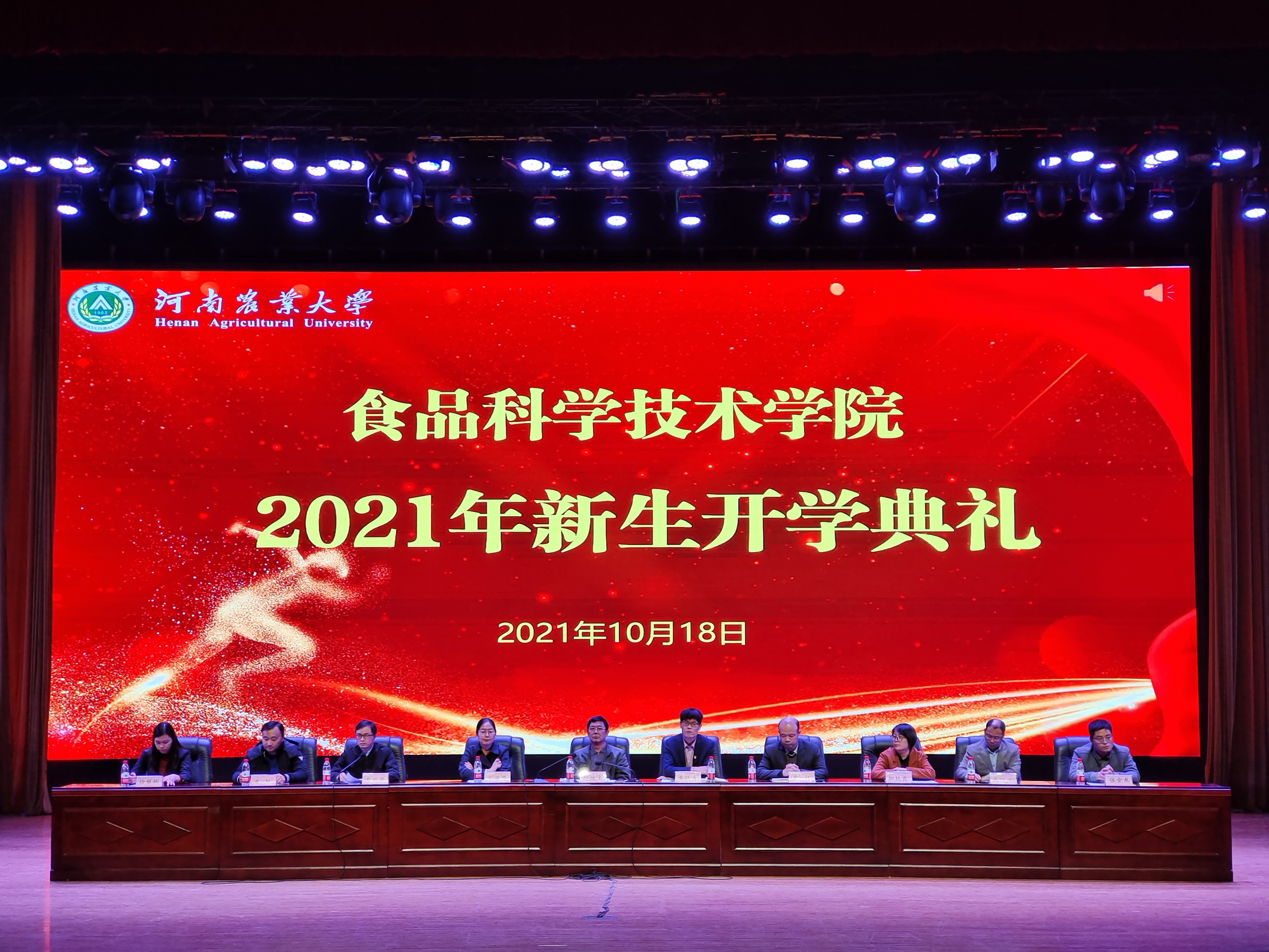 于文化路校区千人大礼堂隆重举办2021级新生开学典礼,院党委书记赵改名、院长黄现青、院党委副书记李蓓蓓、副院长张剑、副院长谢新华、食品科学与工程系主任柳艳霞、食品质量与安全系主任索标、食品营养与化学系主任高晓平、院办公室主任徐丽娜、院团委老师张金龙、2021级各班新生班主任和研究生导师李宁出席典礼,2021级全体新生参加典礼。此次开学典礼由谢新华主持。