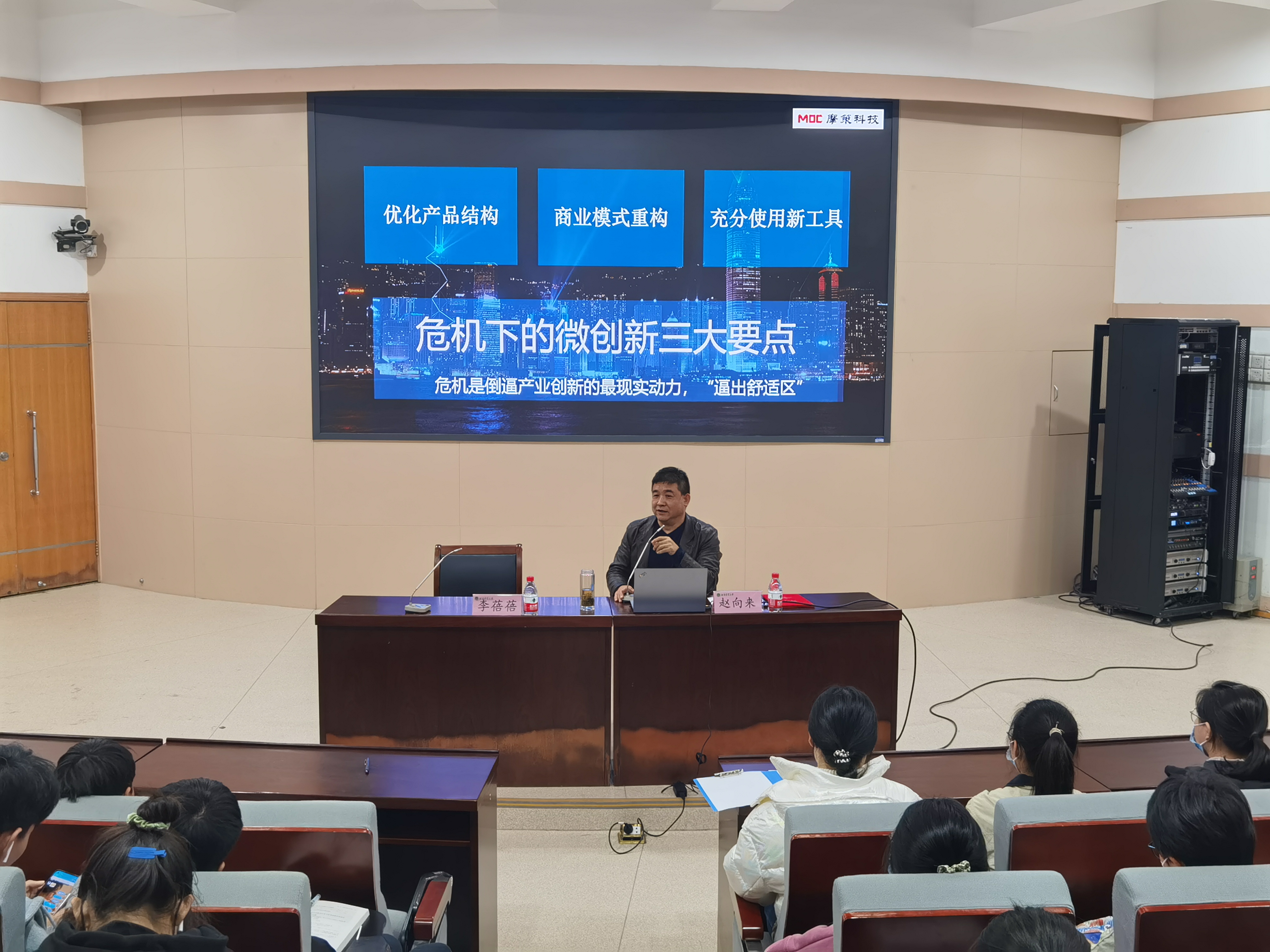 互动提问环节,同学们就“互联网+”大赛提出疑问,赵向来一一予以详细解答。