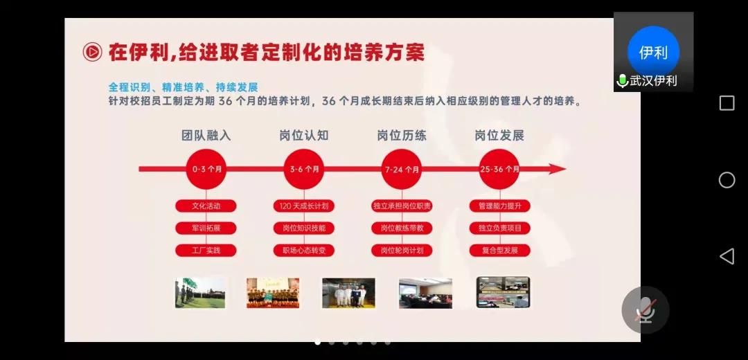 18级部分毕业生参加会议。此次会议由武汉伊利集团人事行政经理郑婷主持。