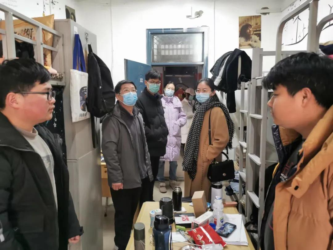 党委书记赵改名、院长黄现青、党委副书记李蓓蓓、团委书记路平、辅导员张金龙等领导老师共同走访学生宿舍,实地了解同学们的学习生活情况,并为同学们送上了关心和问候。