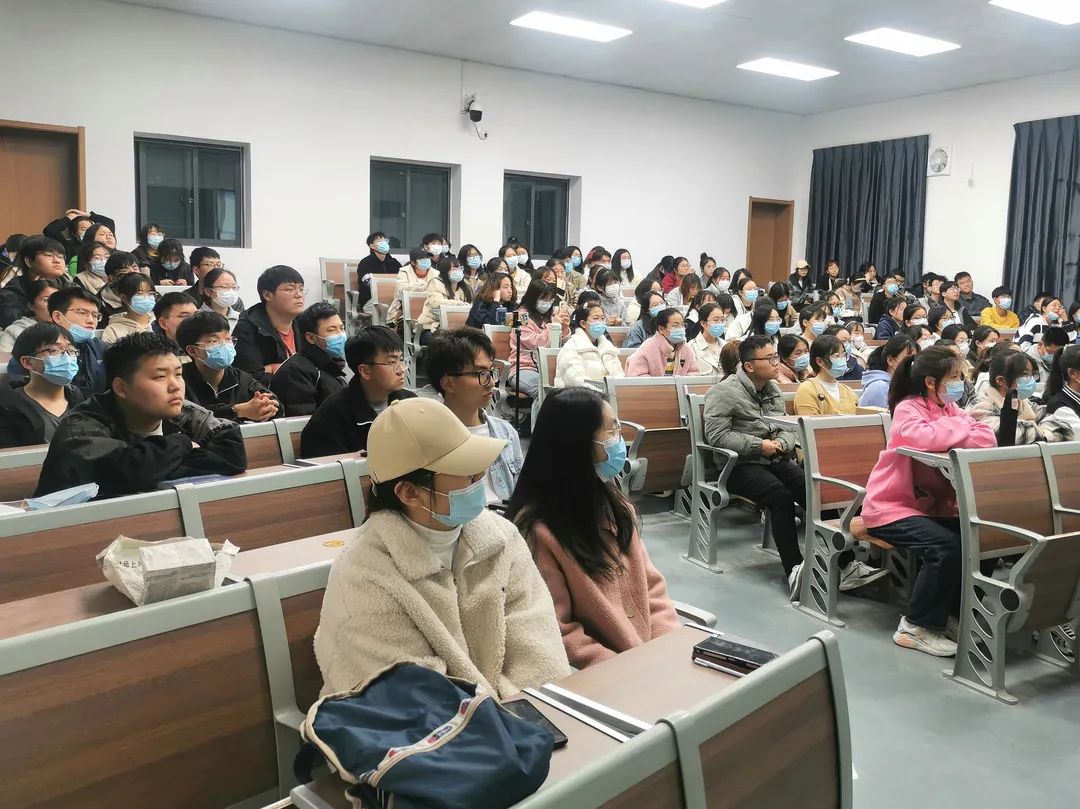 18级食检一班马如想、石必博担任主讲,院部分学生参加会议。