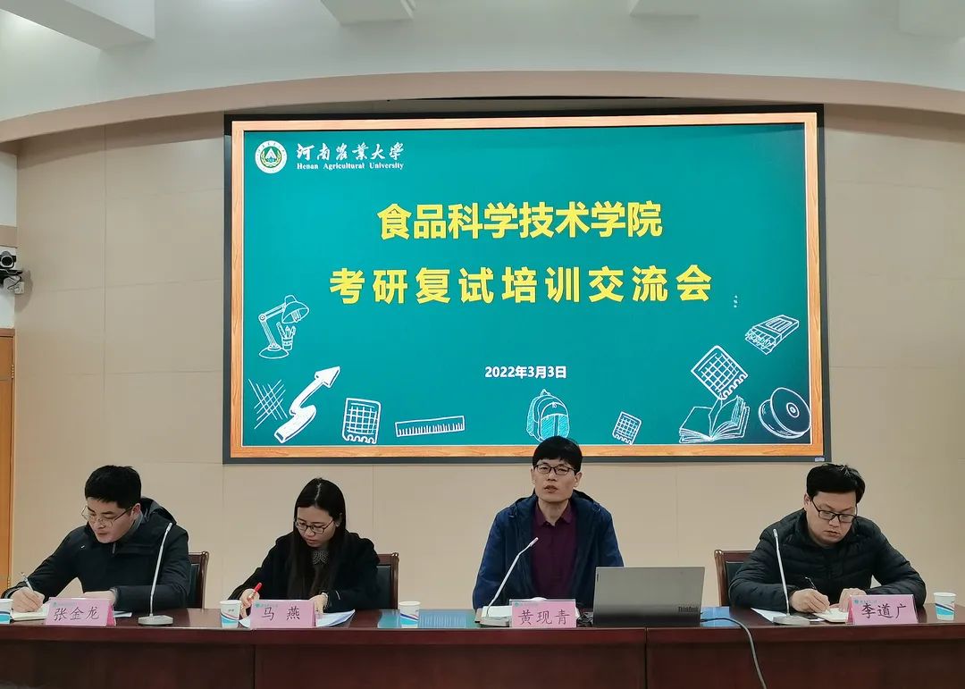 于文化路校区三百人报告厅召开考研复试培训交流会。院长黄现青、教学秘书马燕、院办老师李道广出席本次交流会,18级部分学生参加,此次会议由院辅导员张金龙主持。