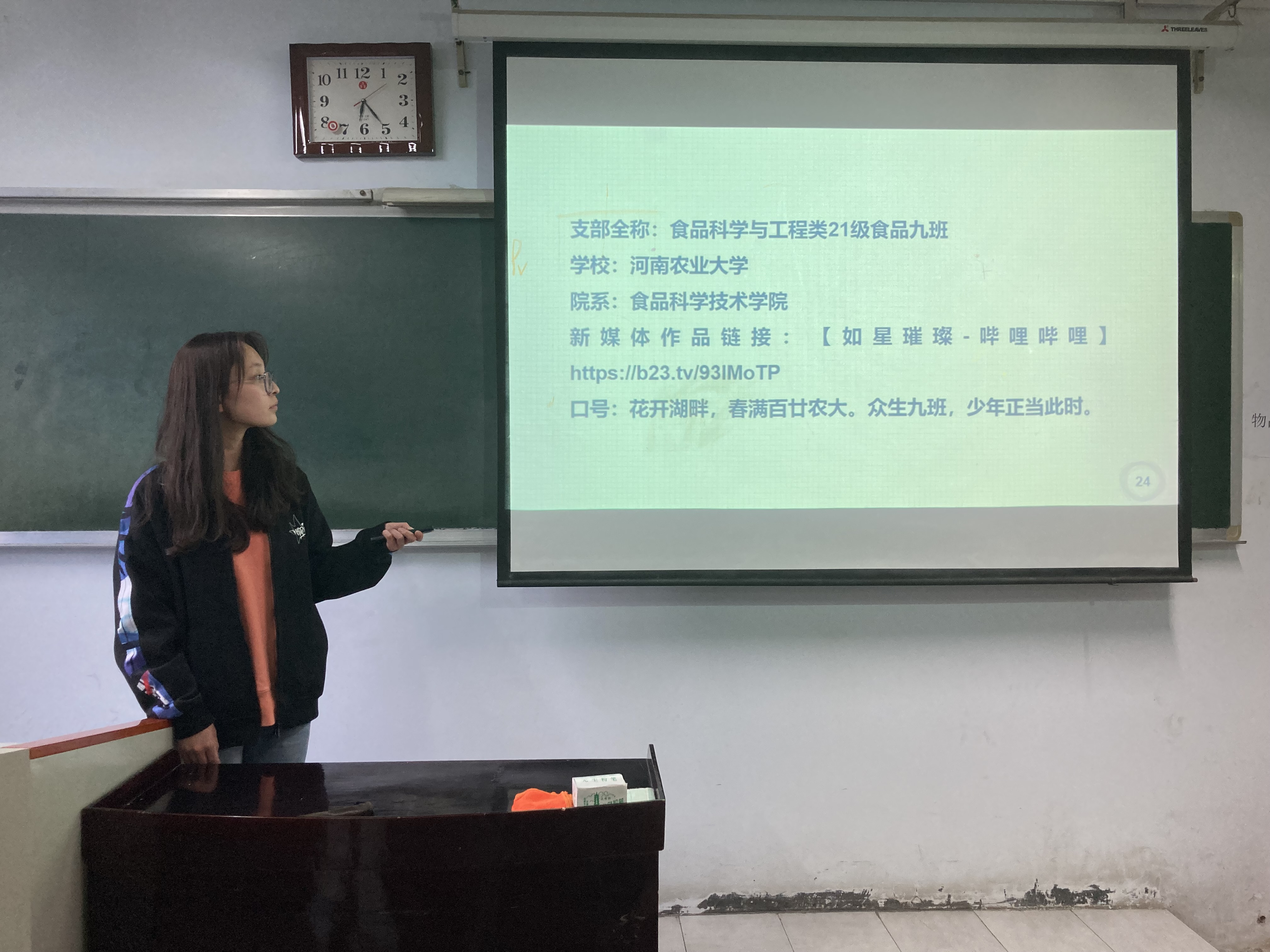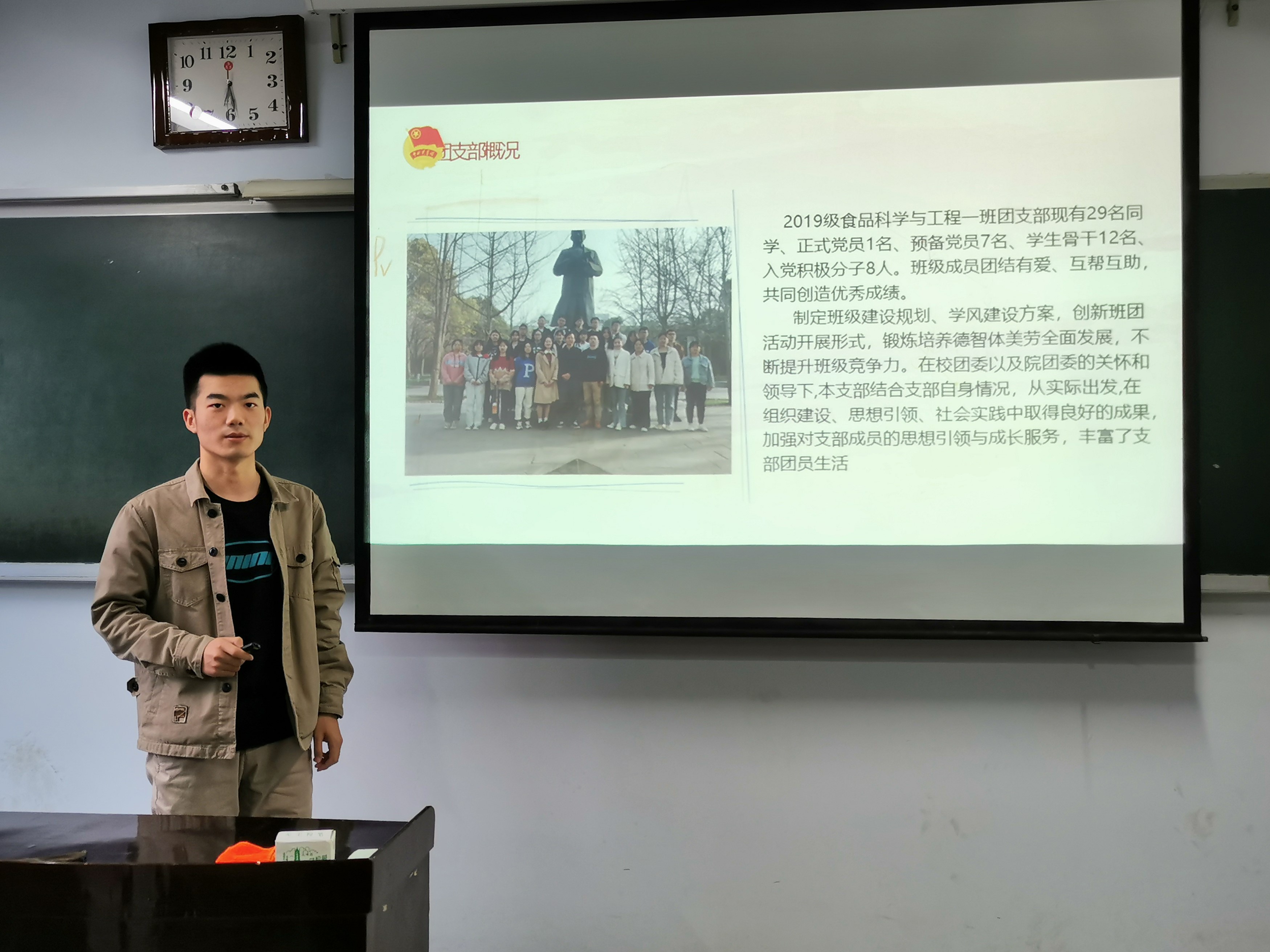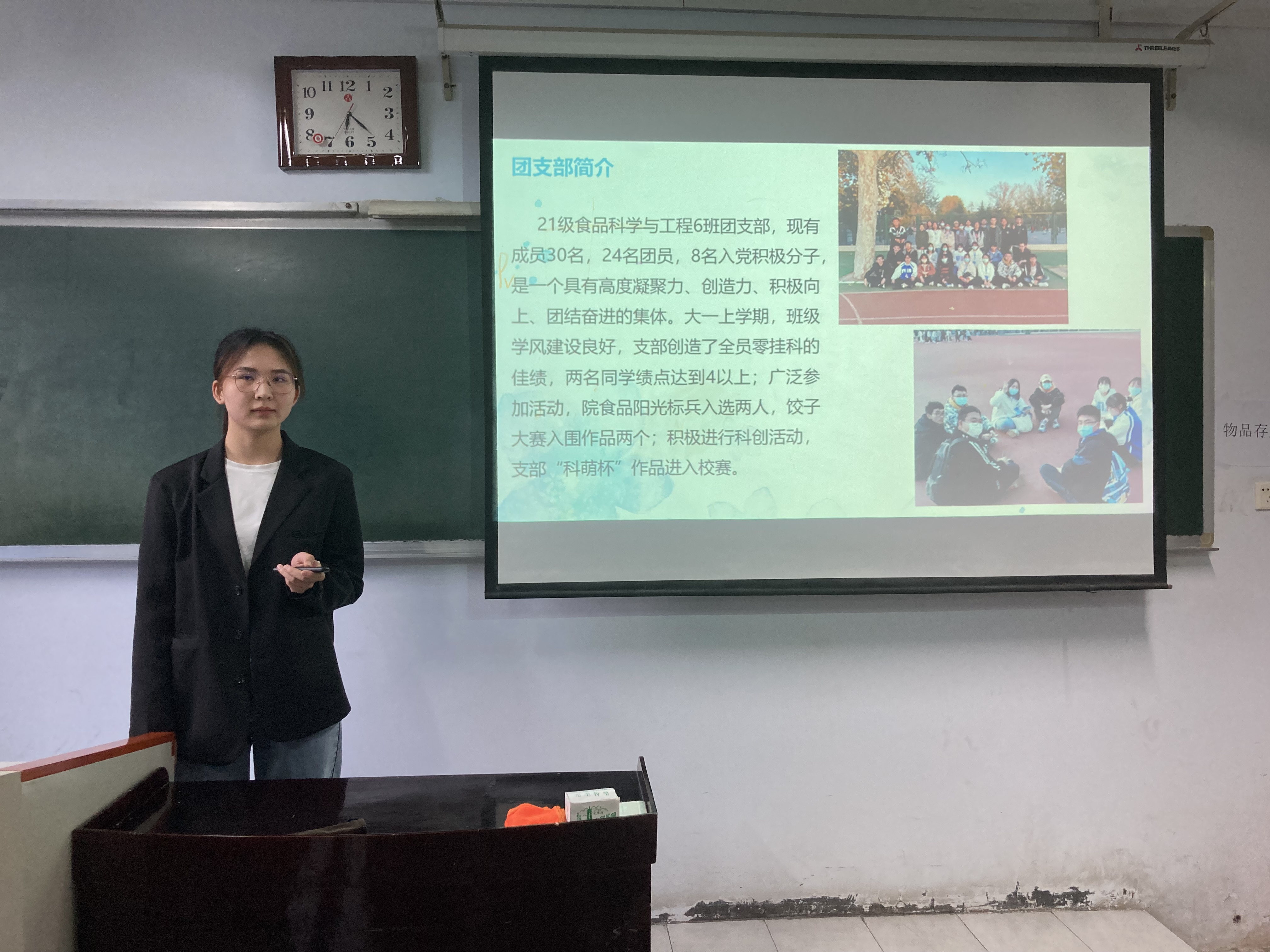 各候选团支部分别以视频和PPT等形式展示,围绕青年大学习、主题团日活动、智慧团建、团支部建设、三会两制一课等方面,全面展示班级团支部的青春活力。各候选团支书分别从学习、工作、生活等方面展开叙述,向评委及观众展示了自己工作成果以及参加各类比赛活动的,展现了一个个热爱生活、乐于奉献、认真负责的团支书形象。朱亚威分享自己暑期参加的防疫志愿活动,号召大家积极参加志愿活动,为社会做出贡献,对同学起到了极大的引领作用。
