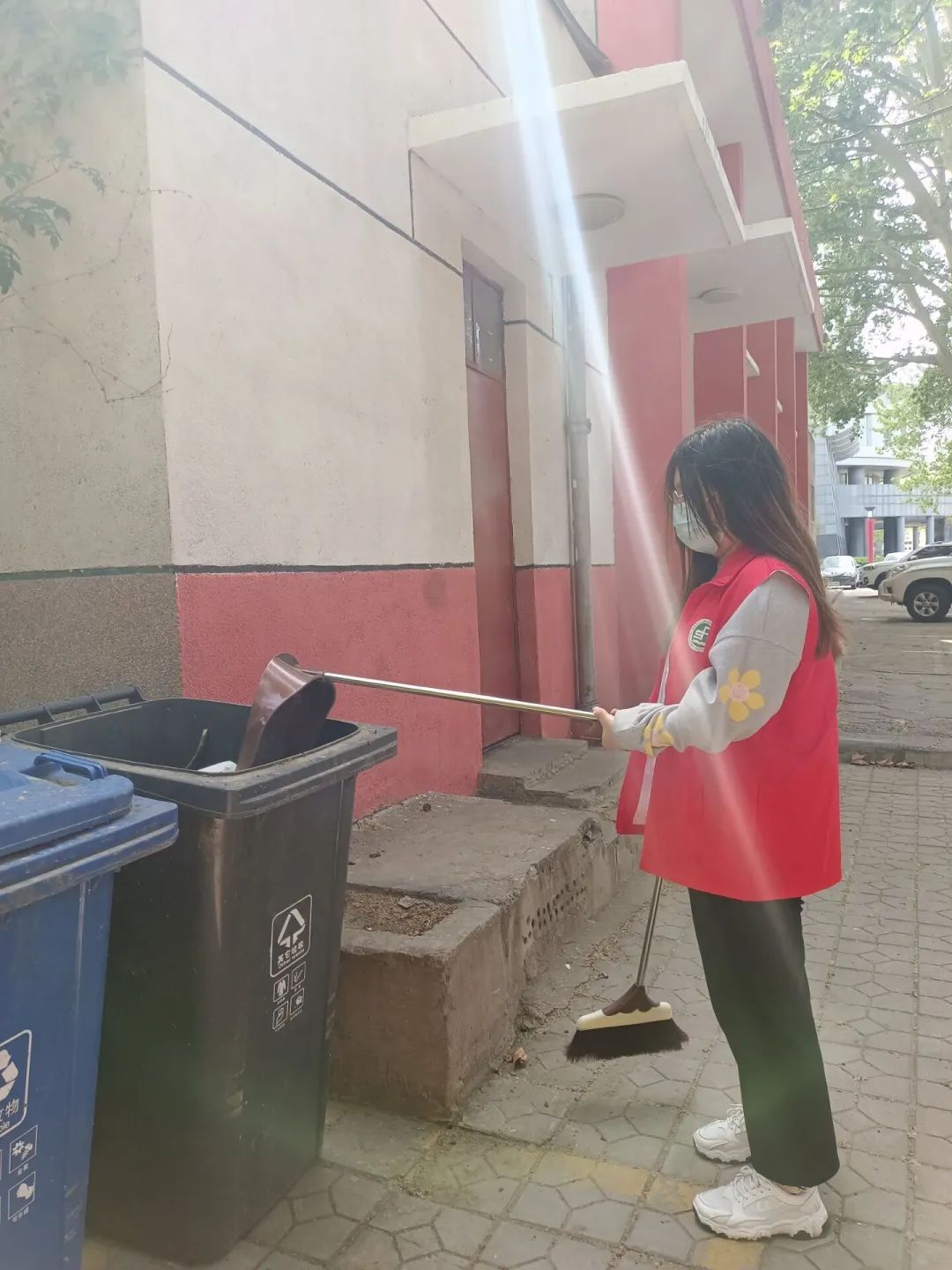 本次活动清扫地点是八号楼前、三号楼和樱花小道。打扫期间,同学们分工协作,热情高涨,认真清理杂物,不放过任何一个角落。整个清扫活动井然有序进行,校园面貌焕然一新。
