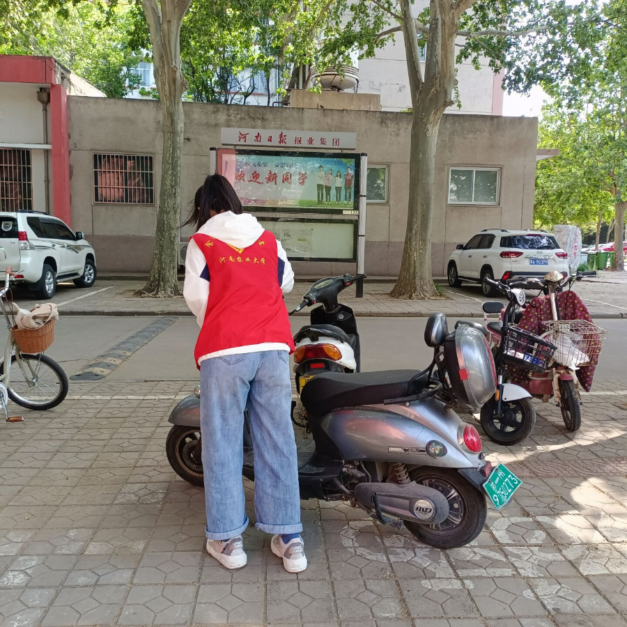 志愿者对乱停放的车辆进行集中摆放整理。