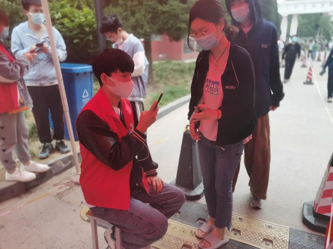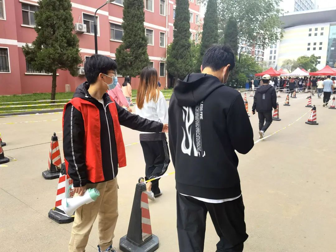 提前下达核酸检测通知,同时,对志愿者进行安排部署,合理分配志愿者工作。检测当天,志愿者们一大早身穿红马甲迅速到达指定位置,有序引导同学们扫码登记,提醒同学们间隔距离排队,帮助检测人员记录信息。同学们按照防控要求,戴好口罩、迅速下楼、分时分段、错峰前往核酸检测地点,有序进行核酸检测。在大家的共同努力下,整个检测过程顺畅高效、井然有序,志愿者们以实际行动传递真情爱心,助力学院核酸检测工作,构筑起疫情防控的坚实壁垒,奉献自己的青春力量。