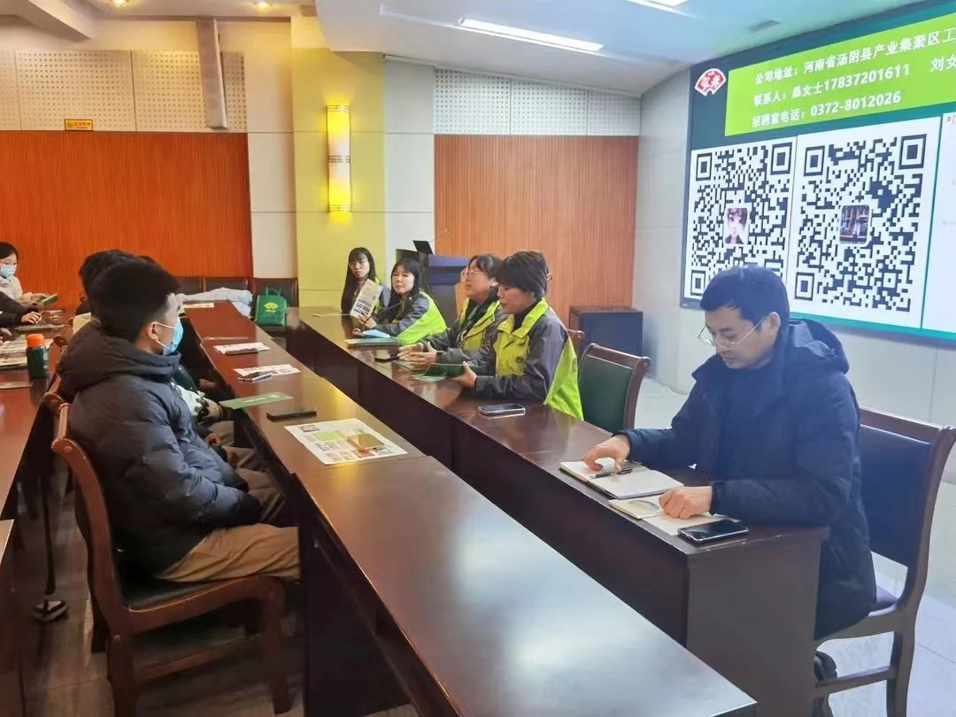——河南安井集团产教融合暨就业工作宣讲会,院团委副书记陈翔、陈凯博士、安井集团人资课长桑海艳、招聘课长张鸭蒙、优秀校友关睿和张雪航出席会议,哔咔漫画