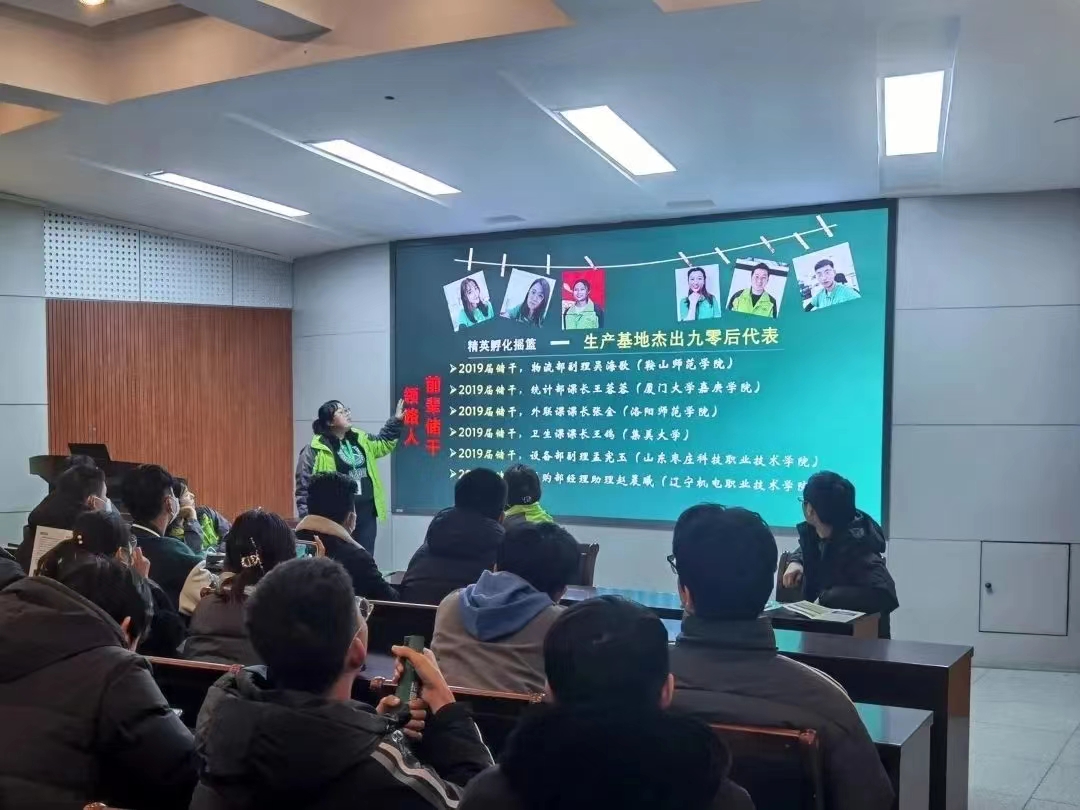 桑海艳通过播放宣传片的方式向同学们介绍了安井集团二十年发展历程、哔咔漫画、经营理念等。她从校招岗位、薪资结构、住宿条件等方面进行详细讲解,加深同学们对安井集团的了解。最后,她希望同学们踊跃加入,为企业发展注入活力。