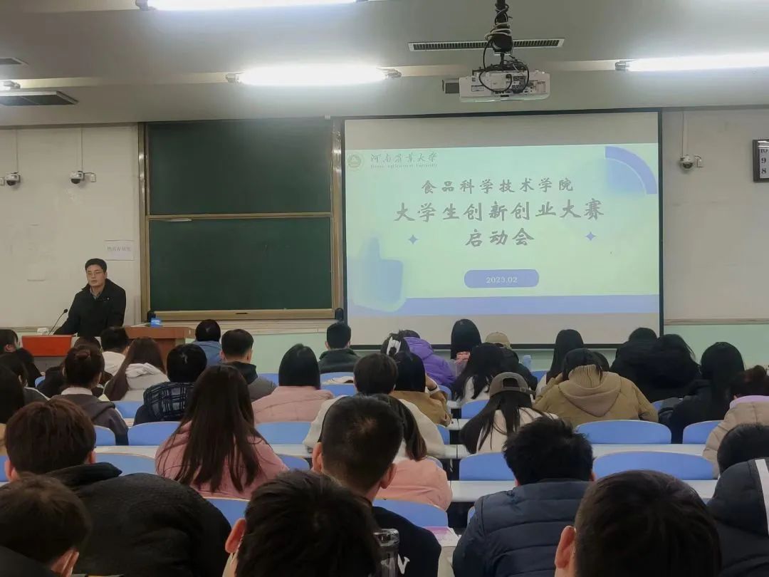 张金龙向同学们介绍了创新创业大赛的类型、时间、赛制以及注意事项。他表示,赛道不同,侧重点不同,同学们在报名参赛时要仔细阅读文件,明确创新方向,选择正确的赛道。随后,他以往届优秀团队为事例强调了经验累积的重要性,希望同学们坚持“以赛代练、以赛促训、突出技能、展示风采”的理念,踊跃参加,通过参赛提高自己的创新意识和综合能力,充实大学生活。